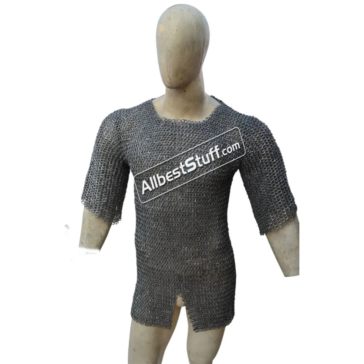 I know what you're thinking-this can't be legit. But it is. It understandably took some time to arrive, but I received a quality riveted aluminum chainmail short hauberk for about $150 with shipping. (I say short because some may expect a hauberk go down to the knees: the length is listed-32 inches) Only complaint is that it is tight. I can only wear it over a longsleeve tshirt. I am a small-boned woman. I do have shoulders, but not broad shoulders by any means. So a word of warning-go larger or order custom. I'm only planning to wear as a costume and not for fighting, so it's fine that I can't wear a gambeson under it (would be too hot anyway). If I want to be sure of a perfect fit, I should order custom-next time I might! Overall I'm very happy with the product, and you can't beat the price! When I was looking at chainmail online at various sites, it all seemed to be made in India. So unless you know someone local, I say go straight to the source.
