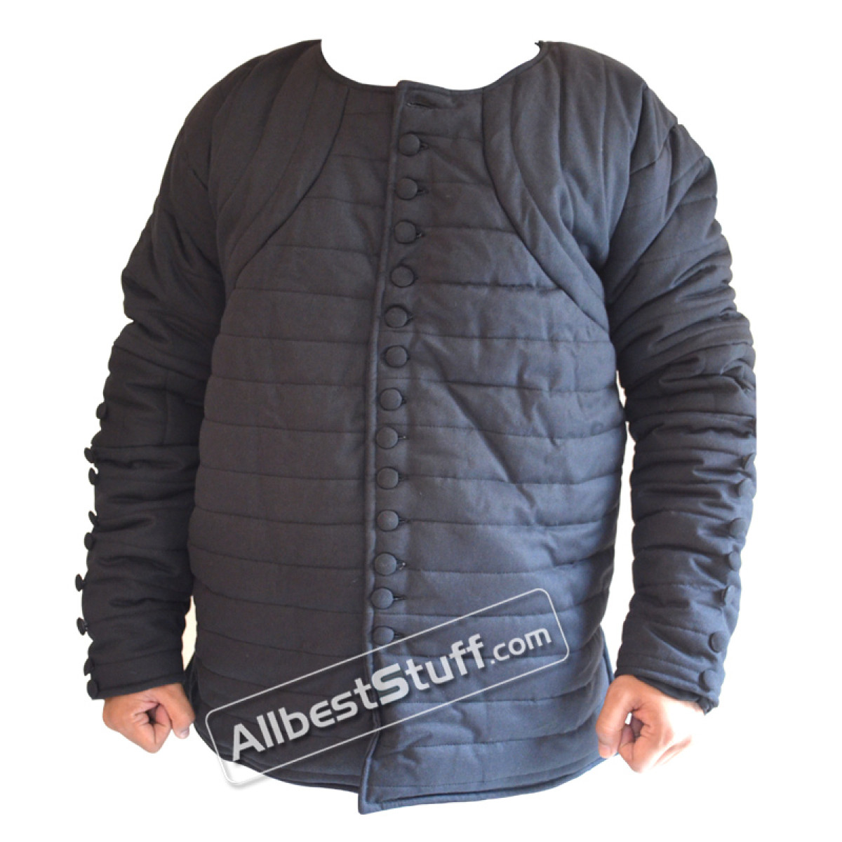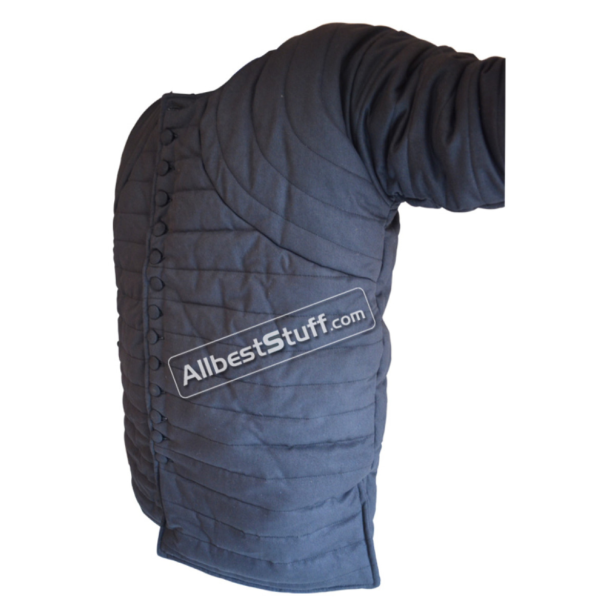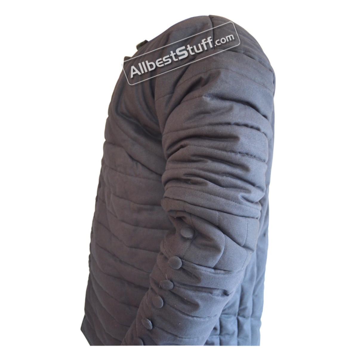 14th Century Padded Gambeson made from High Quality thick Cotton, Cloth Inlets in front for closing and comfort wear. Medieval design in chest & Sleeves. Wear it with heavy duty chain mail or with light aluminum version. Hand Crafted.