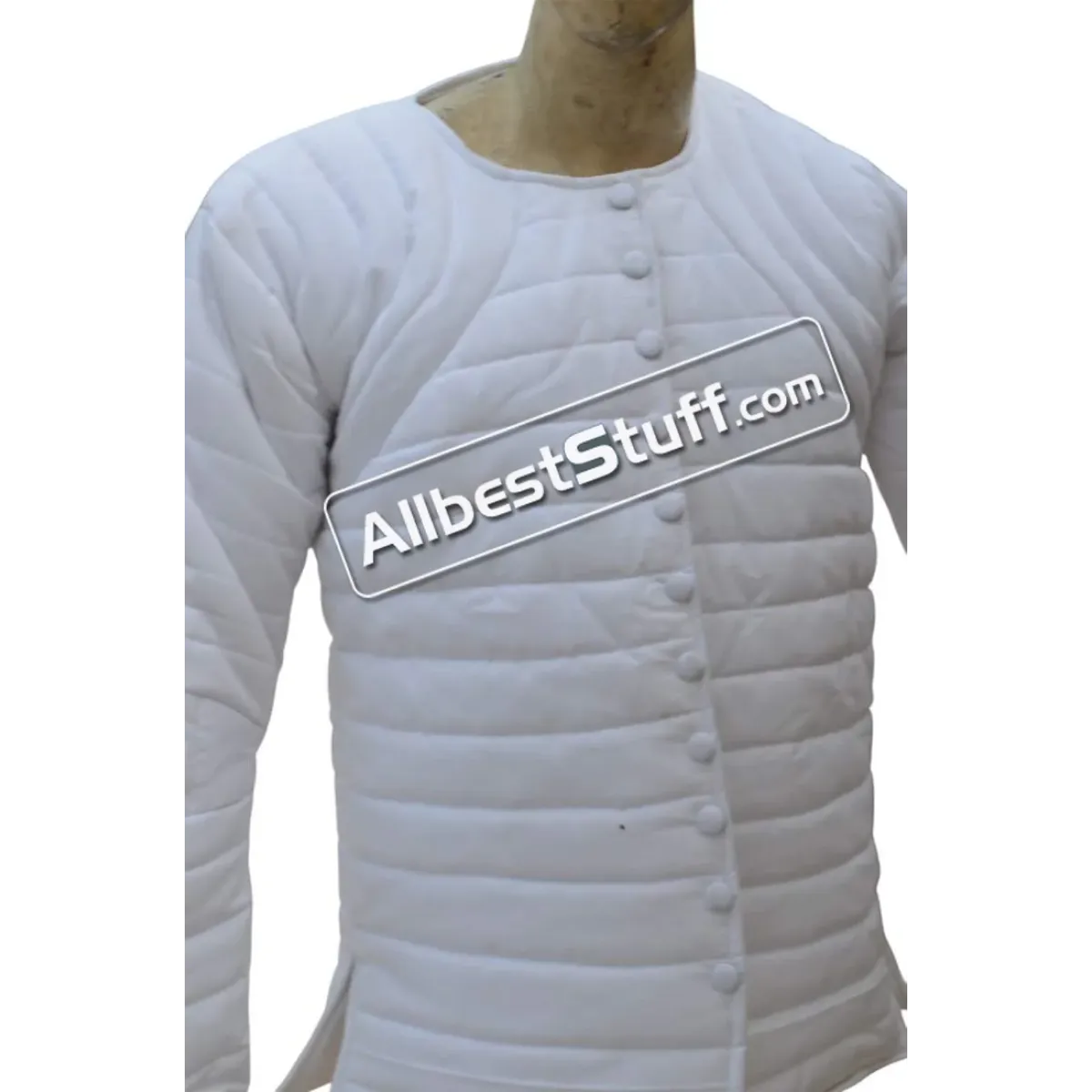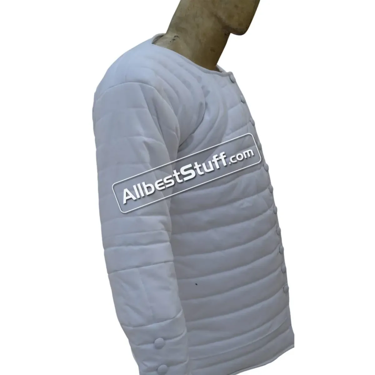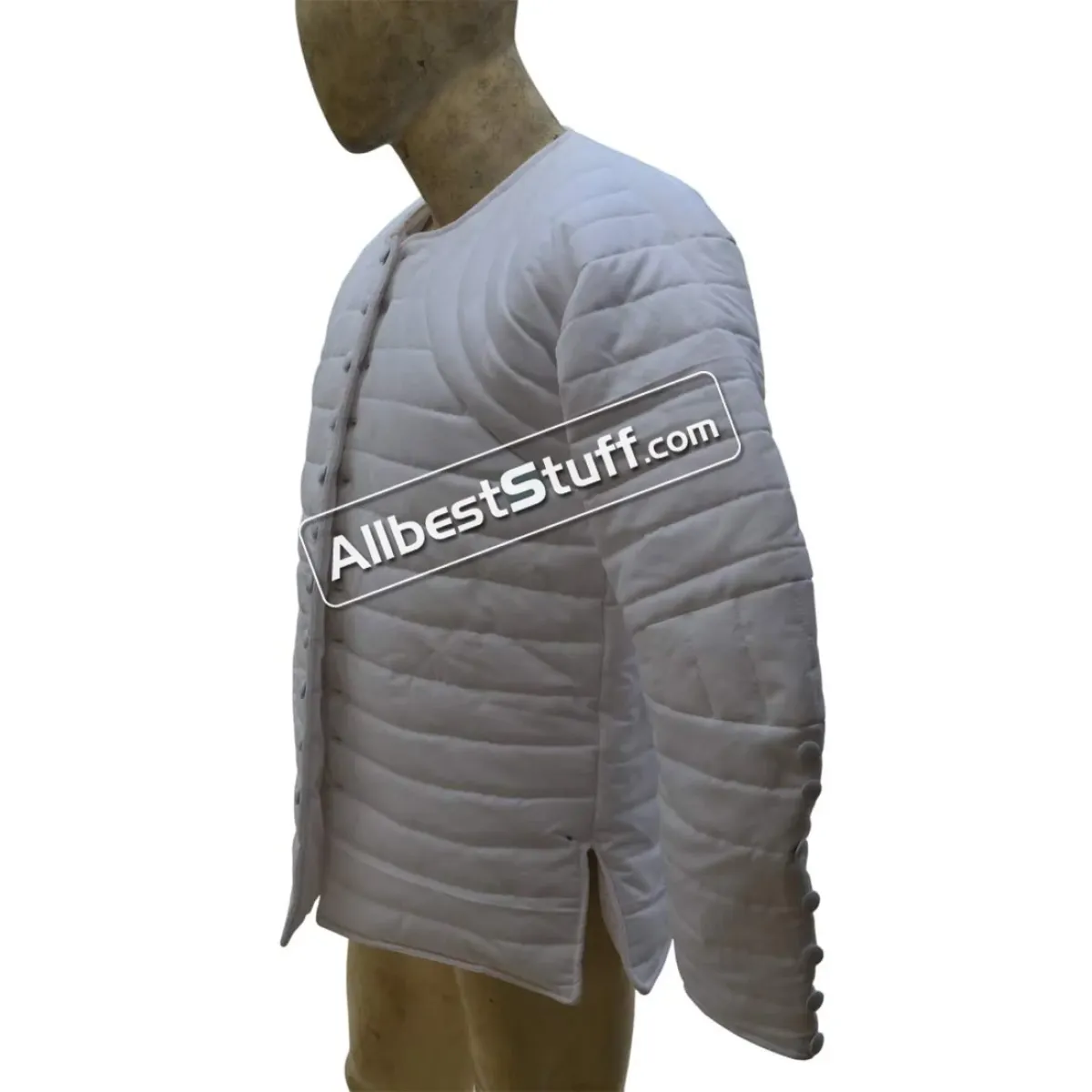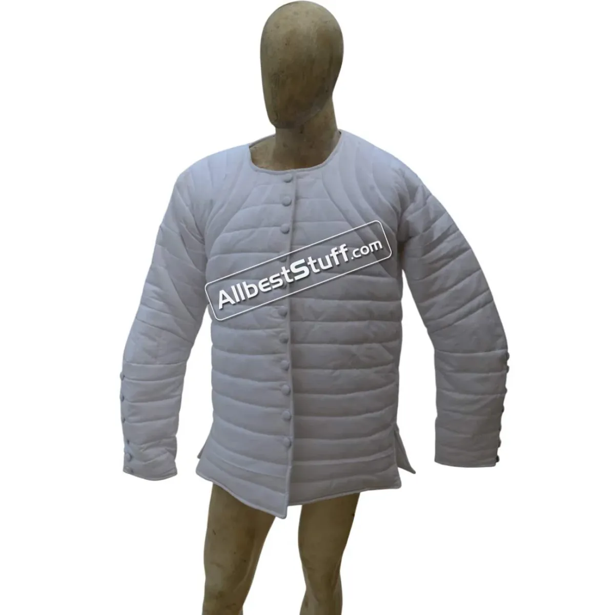 14th Century Padded Gambeson made from High Quality thick Cotton, Cloth Inlets in front for closing and comfort wear. Medieval design in chest & Sleeves. Wear it with heavy duty chain mail or with light aluminum version. Hand Crafted.