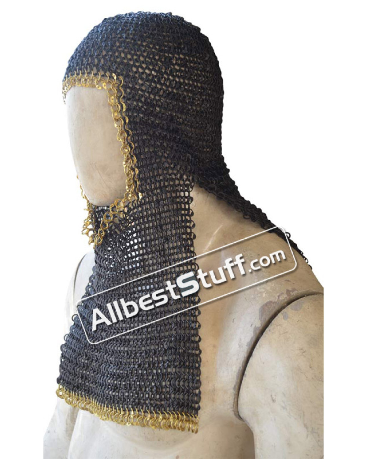 Key Features:Type: Rectangle Shape Maille HoodRing Size:16 Gauge 8 MMWeave Type: European 4 in 1 Round Riveted With SolidWire Type: Mild Steel SteelThis is a rectangle bottom mantle coif available in choice of finish and option of adding ventail for face protection, choose from additional options.