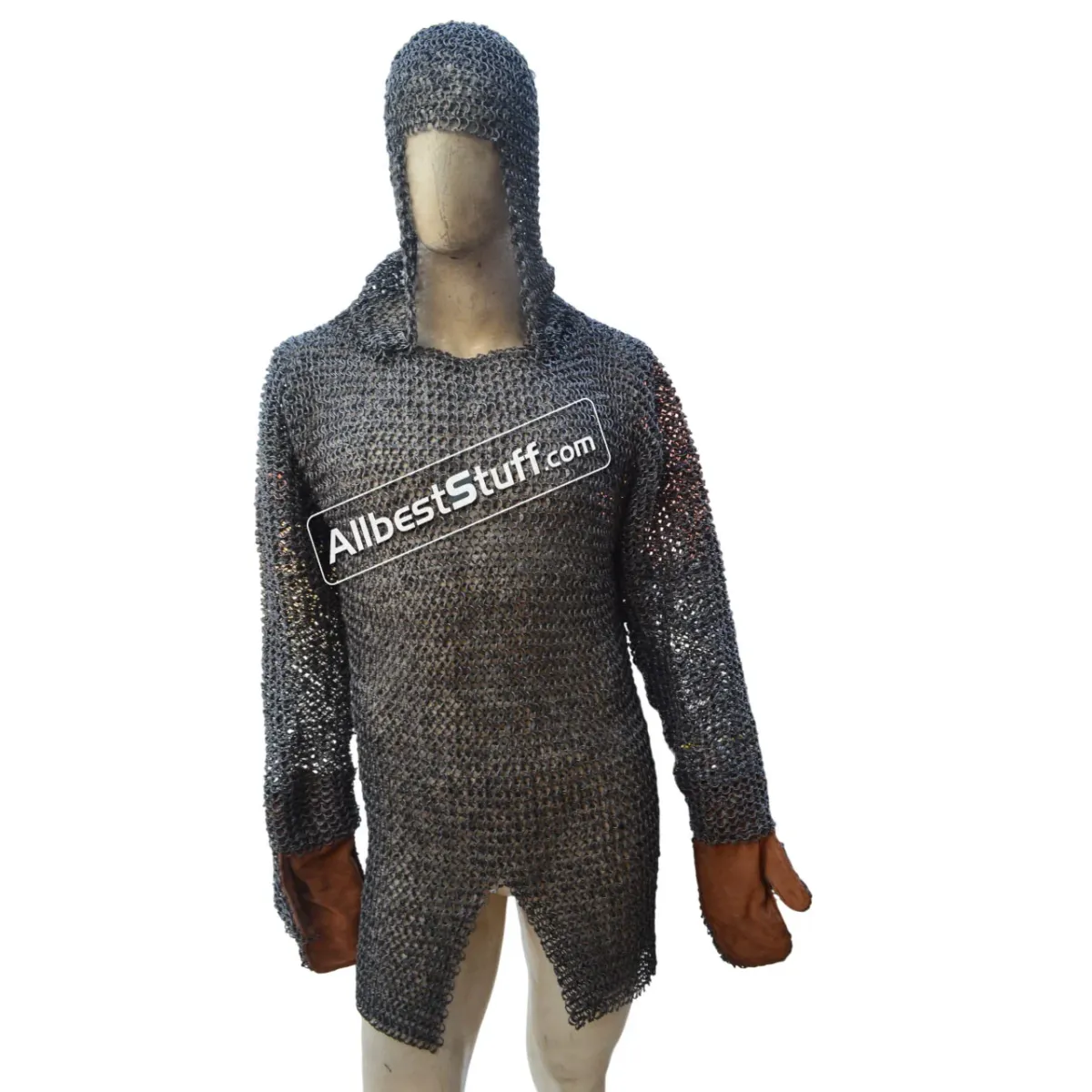 Awesome chain mail, durable, riveted, no rings fell off. Oil is perfect, not too greasy. Blackened mild steel looks authentic, feels great, heavy, will last a long time.