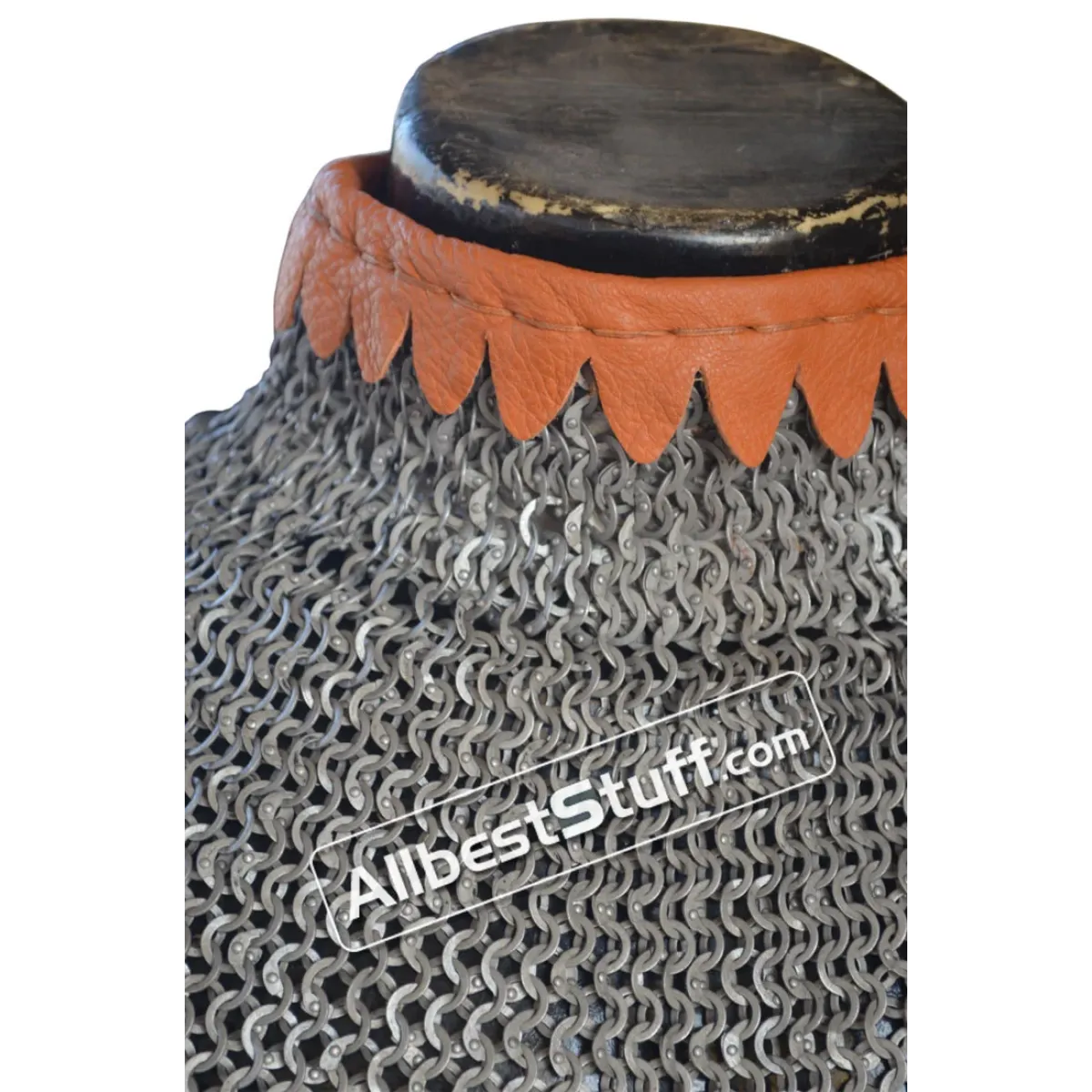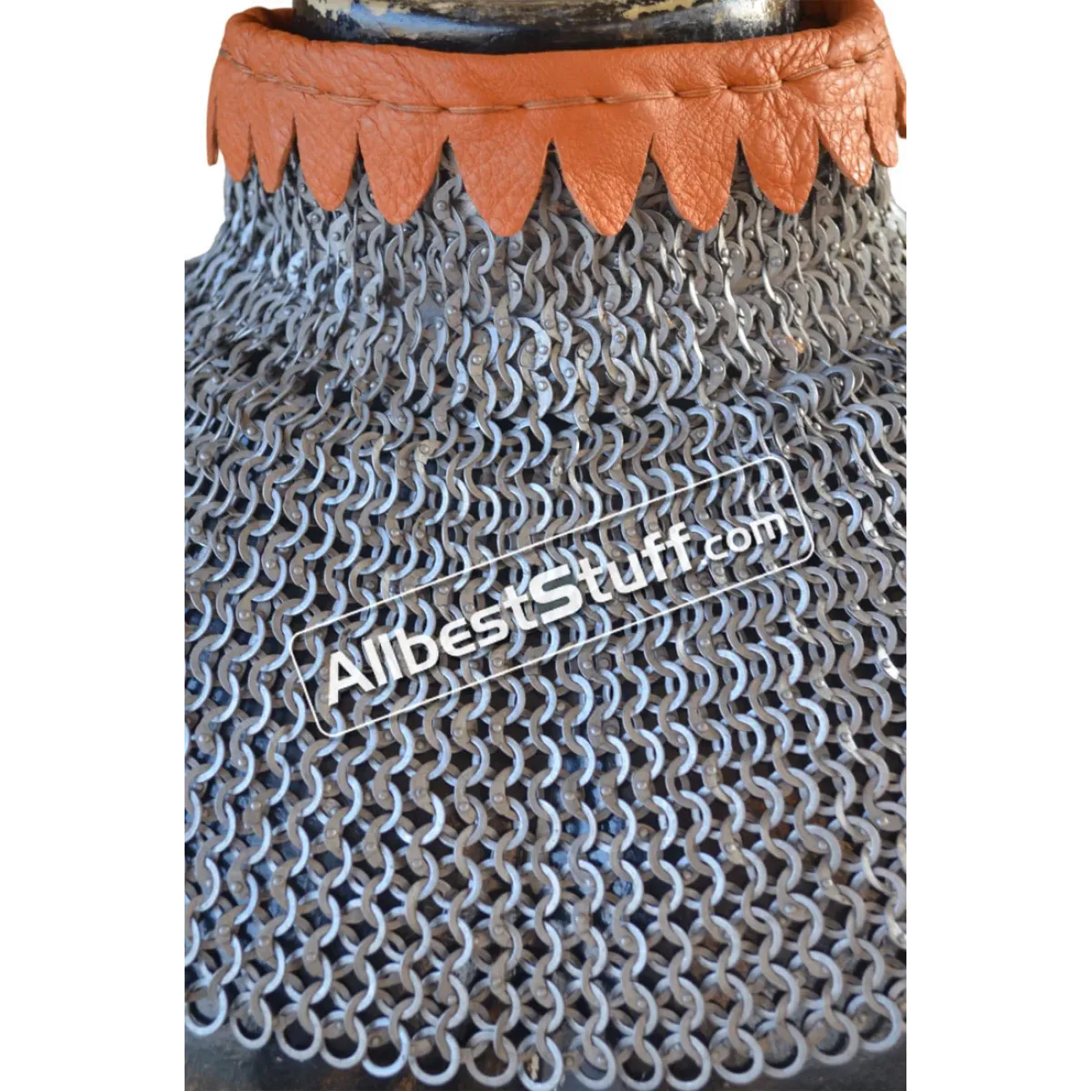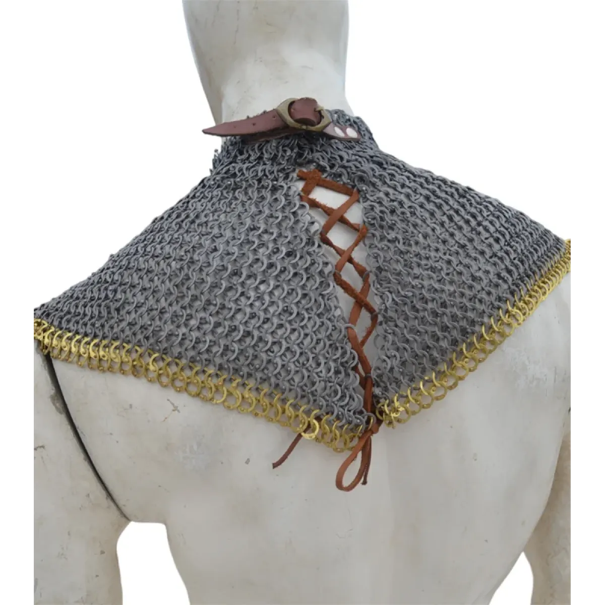 Material: Made from Steel WireNeck Circumference (opening): 20 inchesWeave Type: European 6 in 1 (Ring type: 18 Gauge 9 mm, Full Flat Dome Riveted Ring)Neck Collar height: 2.5 to 3 inchesLength: 6-7 inchesWeave Type: European 4 in 1 (Ring type: 18 Gauge 8 mm, Flat Dome Riveted Ring with alternating Solid Ring)01 Leather fastener to close the NeckFinish: Choose from options ** Note: If you want to add brass to the bottom choose from additional options.