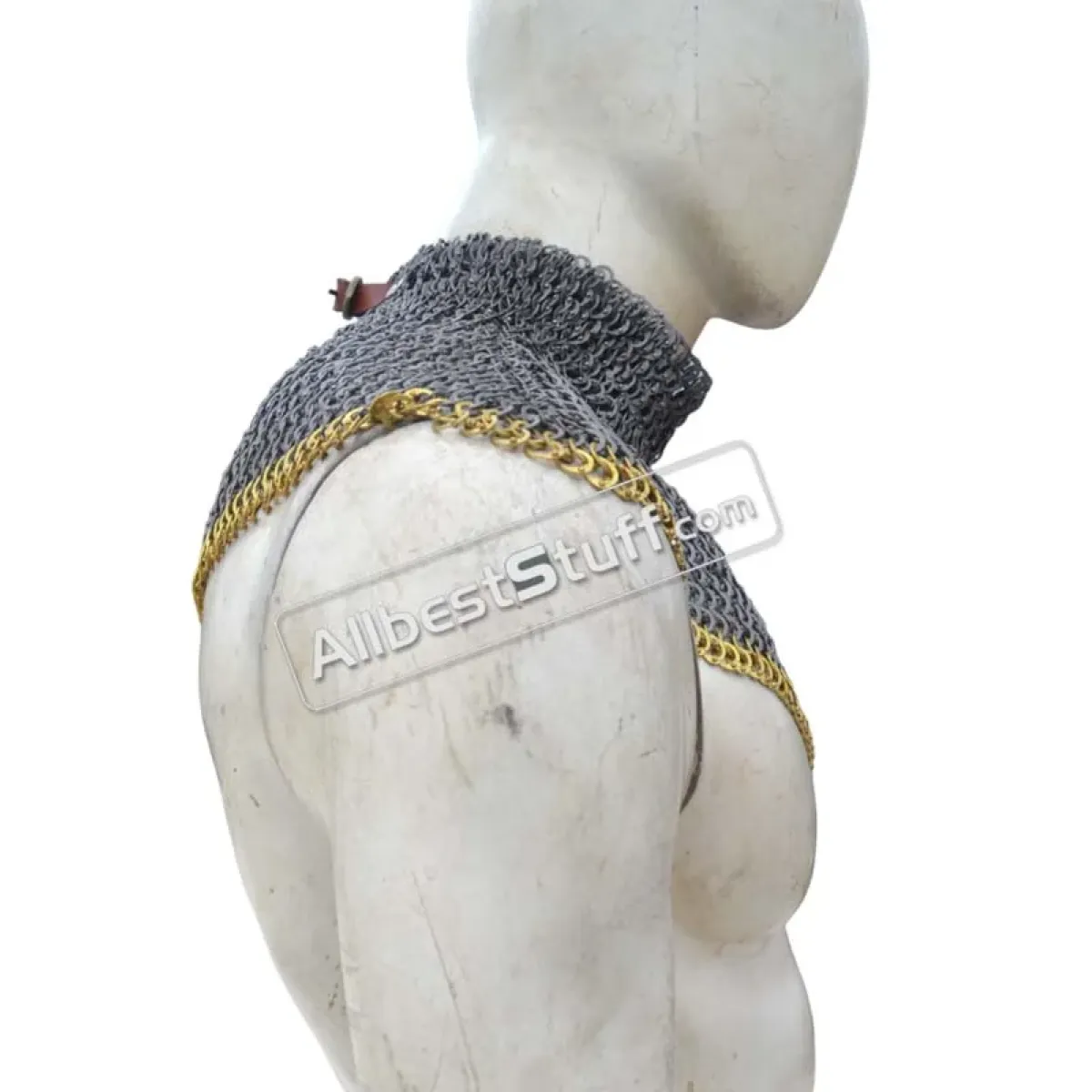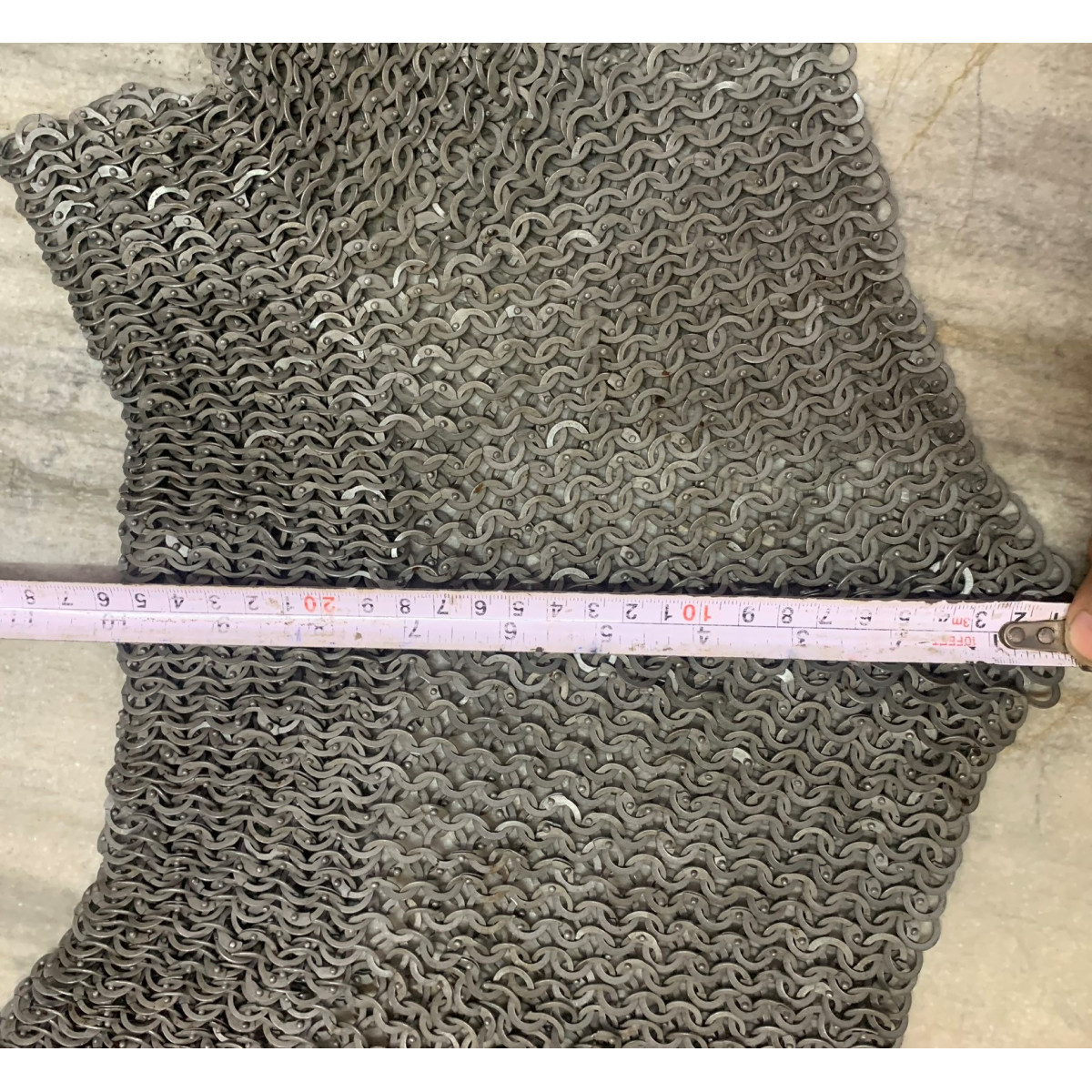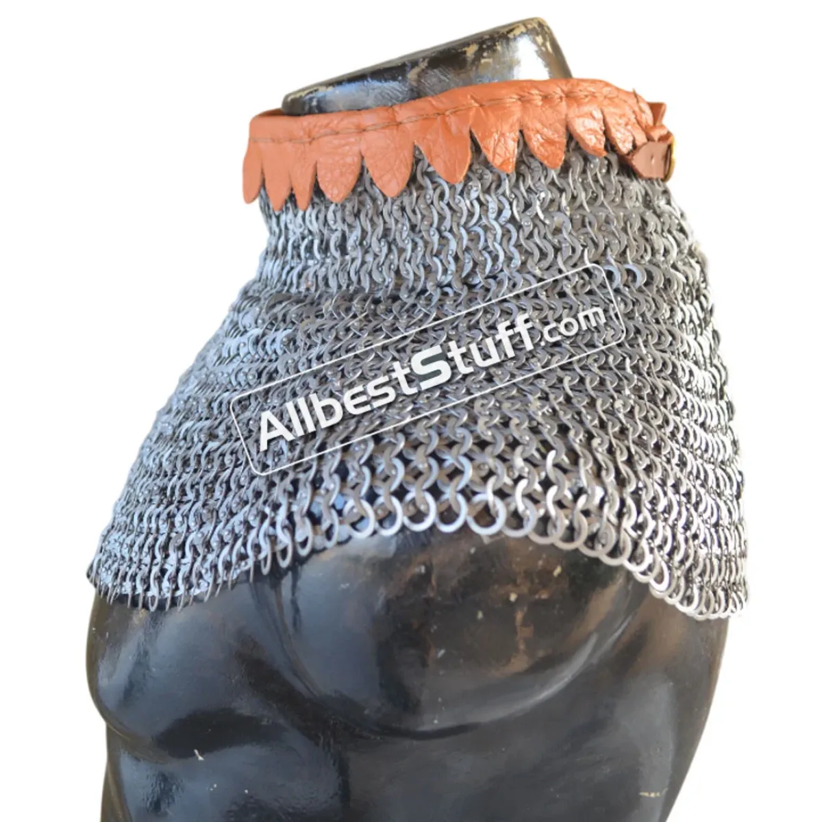Material: Made from Steel WireNeck Circumference (opening): 20 inchesWeave Type: European 6 in 1 (Ring type: 18 Gauge 9 mm, Full Flat Dome Riveted Ring)Neck Collar height: 2.5 to 3 inchesLength: 6-7 inchesWeave Type: European 4 in 1 (Ring type: 18 Gauge 8 mm, Flat Dome Riveted Ring with alternating Solid Ring)01 Leather fastener to close the NeckFinish: Choose from options ** Note: If you want to add brass to the bottom choose from additional options.