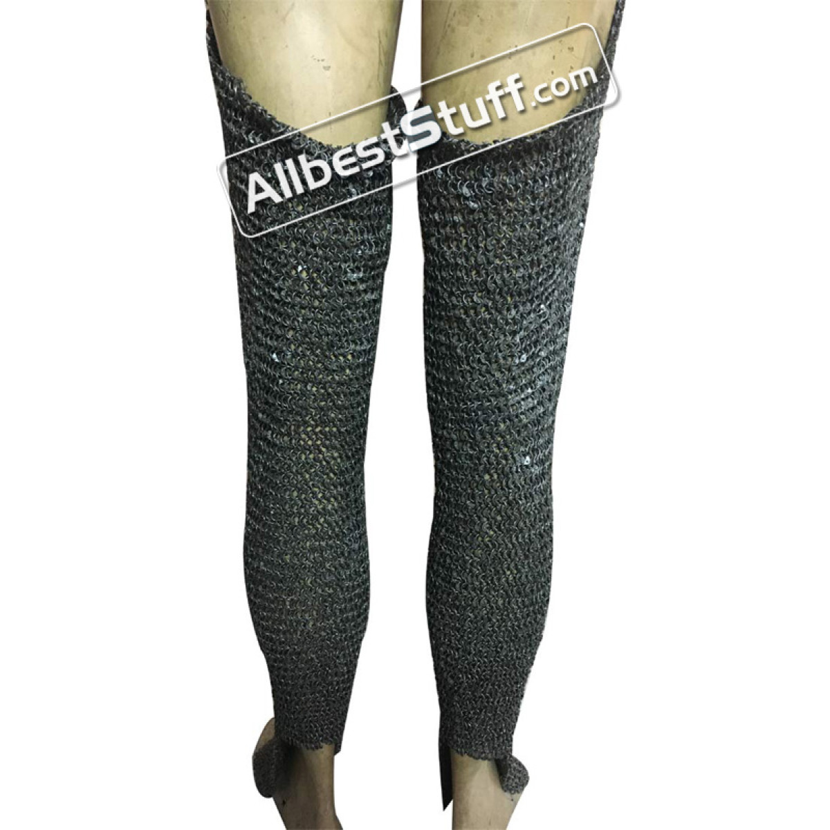 Key Features:Ring Size:18 Gauge 6 MM, All Rings are Round All Rings are Dome RivetedWeave Type: European 4 in 1Wire Type: SteelDimension of Chain Mail ChaussesOverall Length from where you tie your belt to ankle: 37 InchCircumference at Top (thigh): 25 InchCircumference at Ankle: 16 InchShoe Cover: 8 Inch