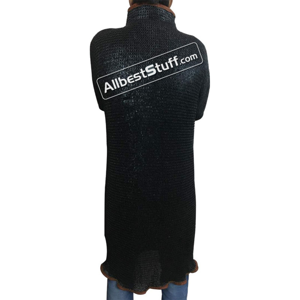 Sleeve Length: 20 inches from under the armpit Sleeve Circumference: 20 inches at armpit tapered to 12 inches at wrist Overall Length from shoulder: 44 Note: Buckles on collar and closed from right side shoulder (as per photographs 5 buckles to close the chain mail on right front side).