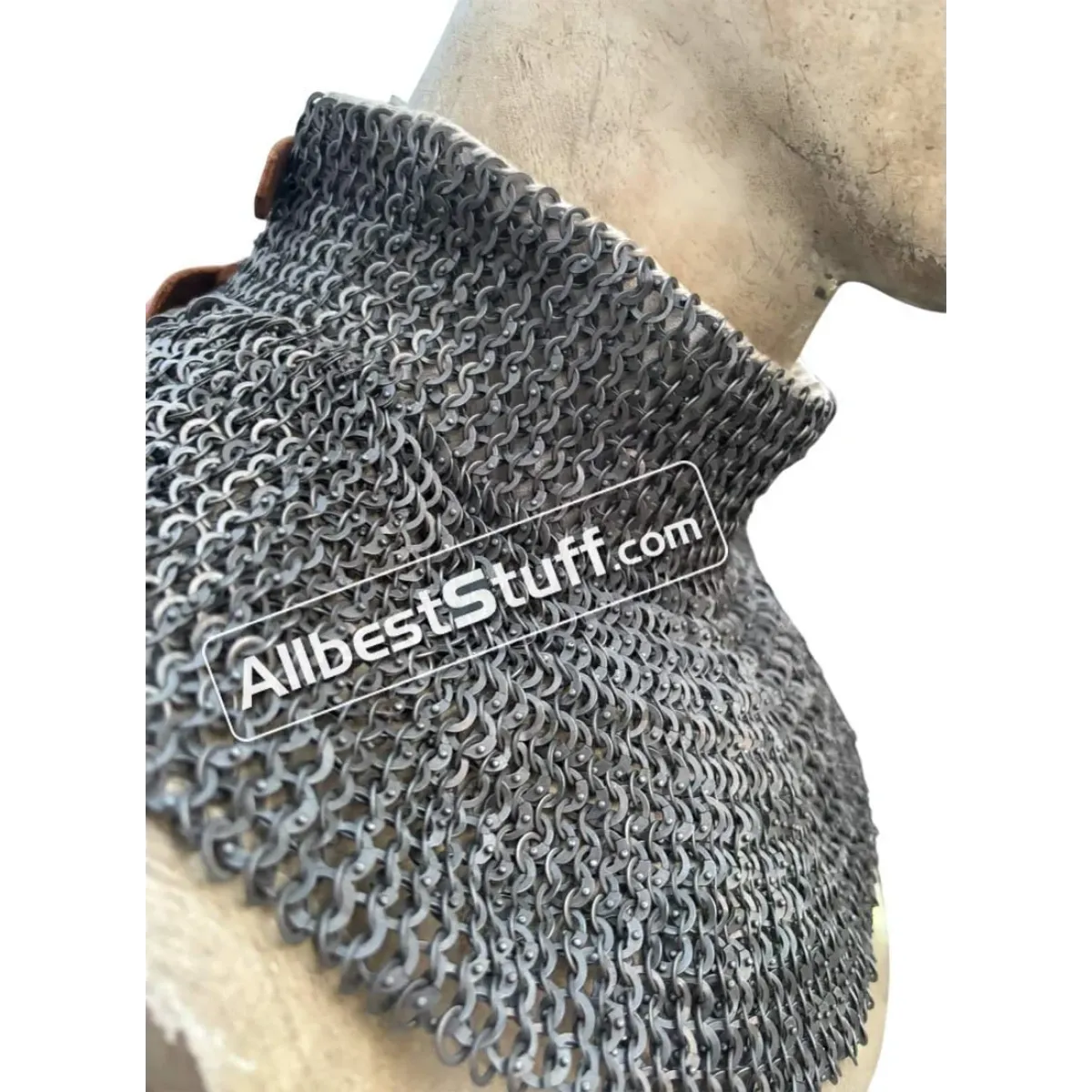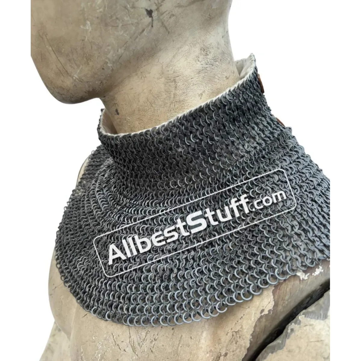 Medieval Stylish Chain Mail Collar with high neck Collar. Linen padding for neck protection. 2 Brass buckle at the back with leather fastener to cover the neck area.