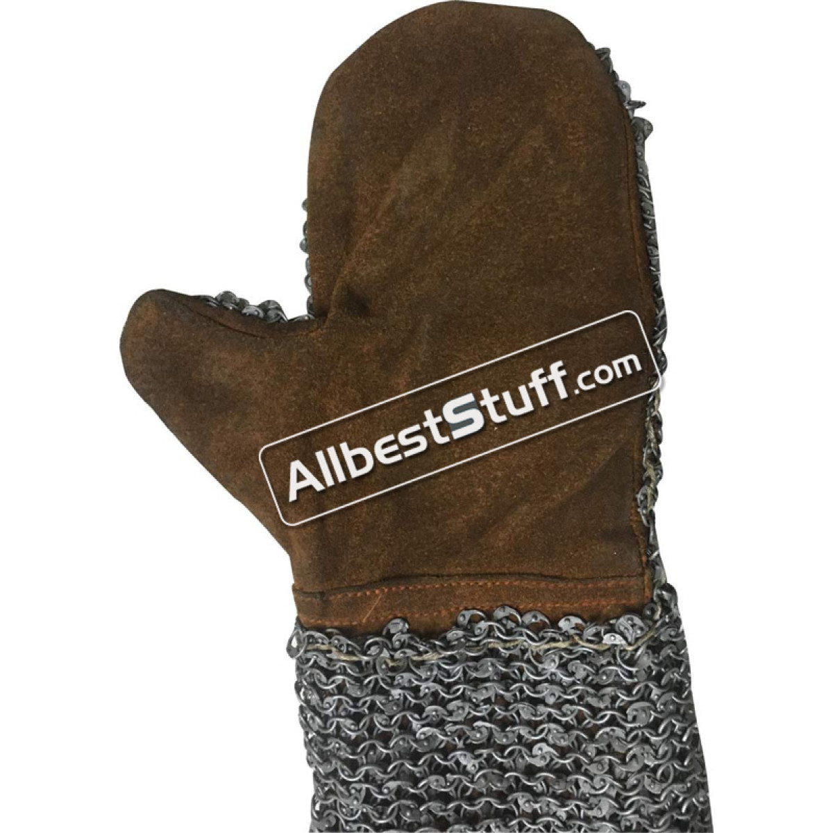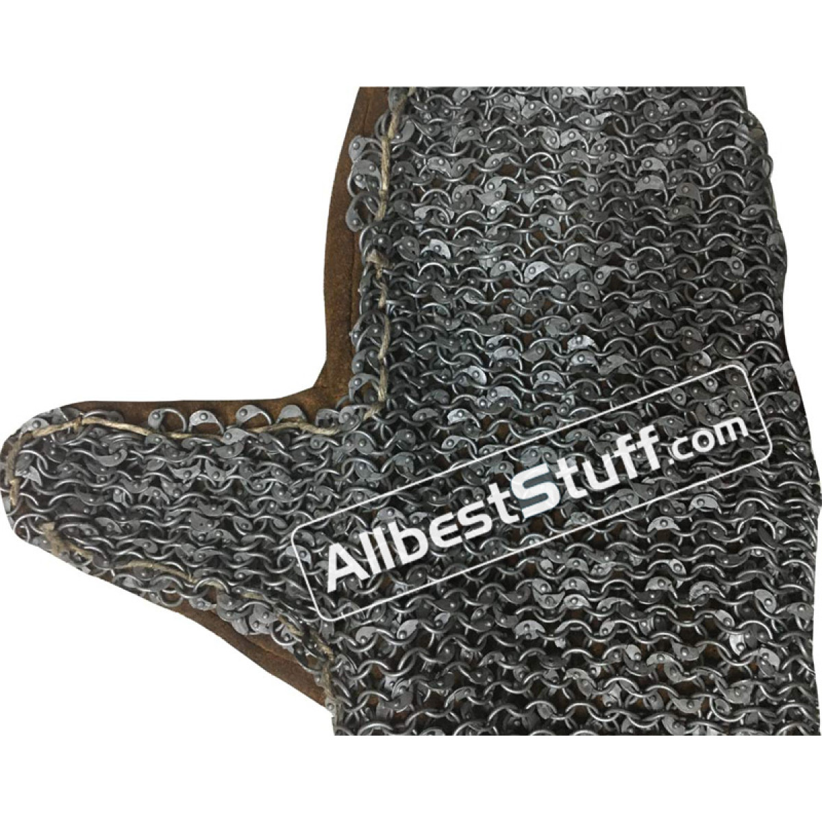 This is a nice pair of leather based chain mail mittens, a perfect piece of hand protection in the battle field. 6 mm Round Riveted maille stitched to genuine leather mitten, a great piece to use with your existing chain mail hauberk or otherwise.