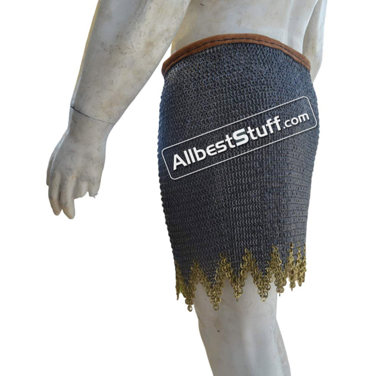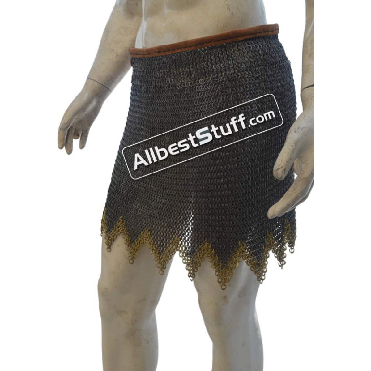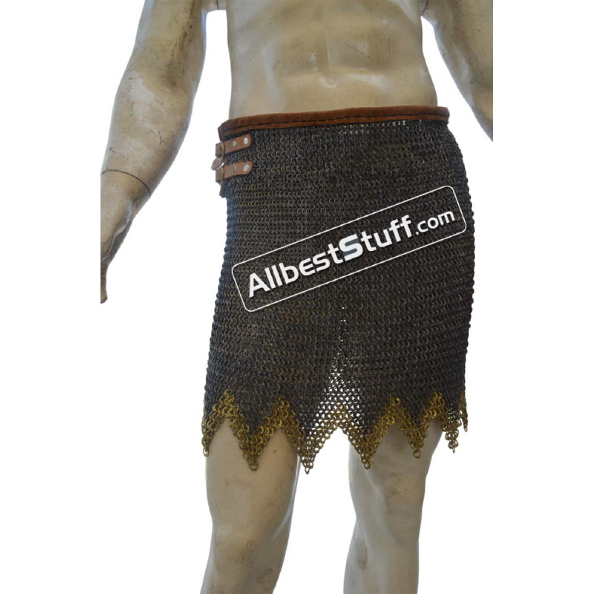 The maille skirt is available under various tying options. You can buy in form of open sheet to tie under own arrangement or additionally choose a closed version by selecting number of fastener to be put on the side OR a leather & thread version. Upon selecting additional option for installing fasteners / or thread with leather, a stitched version of maille skirt will be sent.