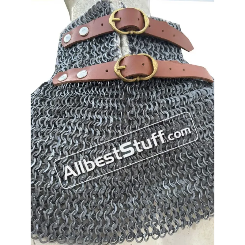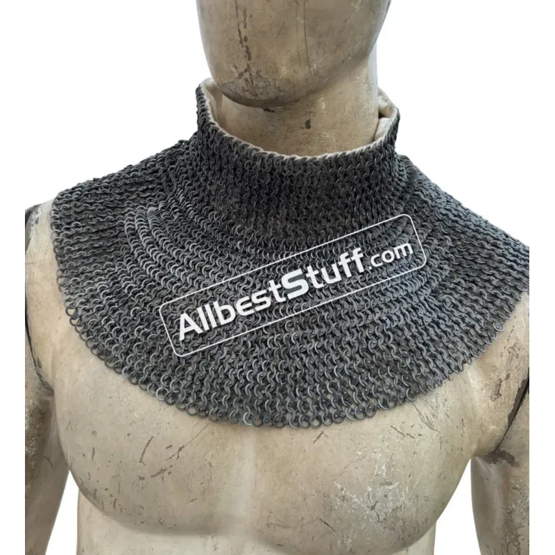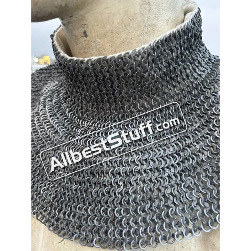 Medieval Stylish Chain Mail Collar with high neck Collar. Linen padding for neck protection. 2 Brass buckle at the back with leather fastener to cover the neck area.