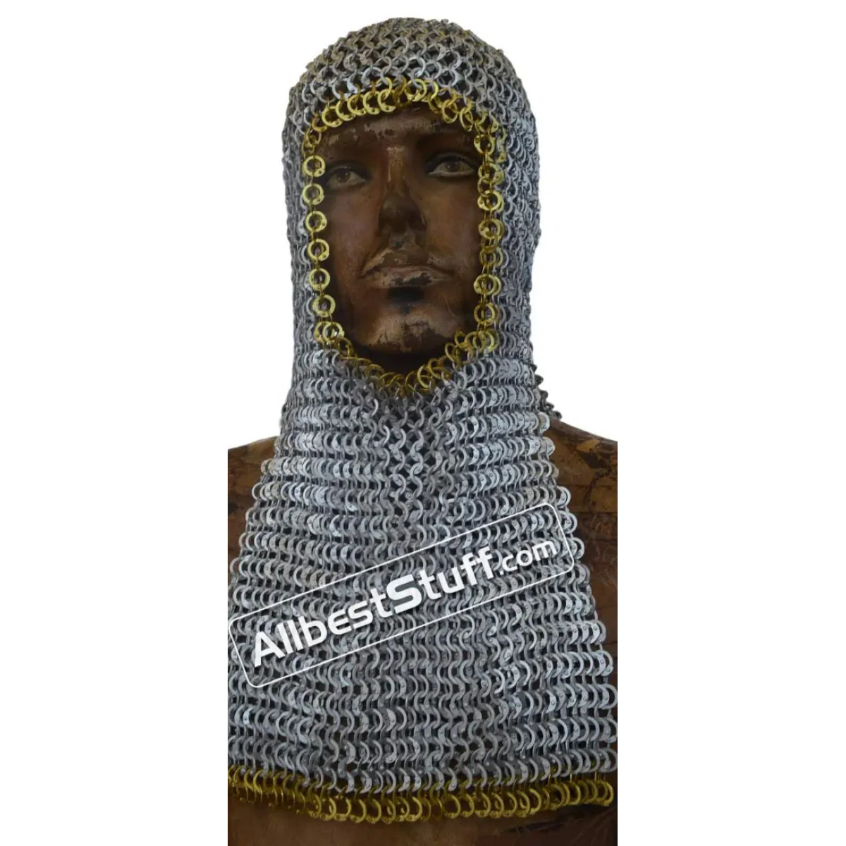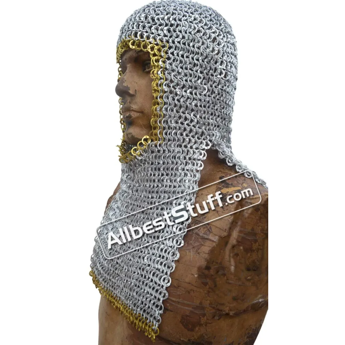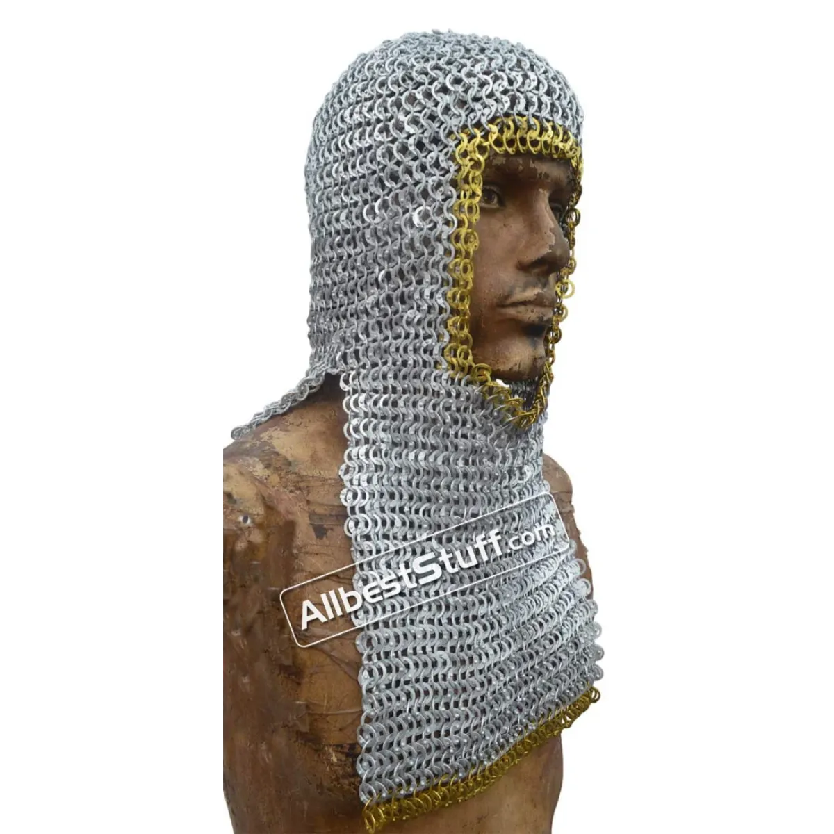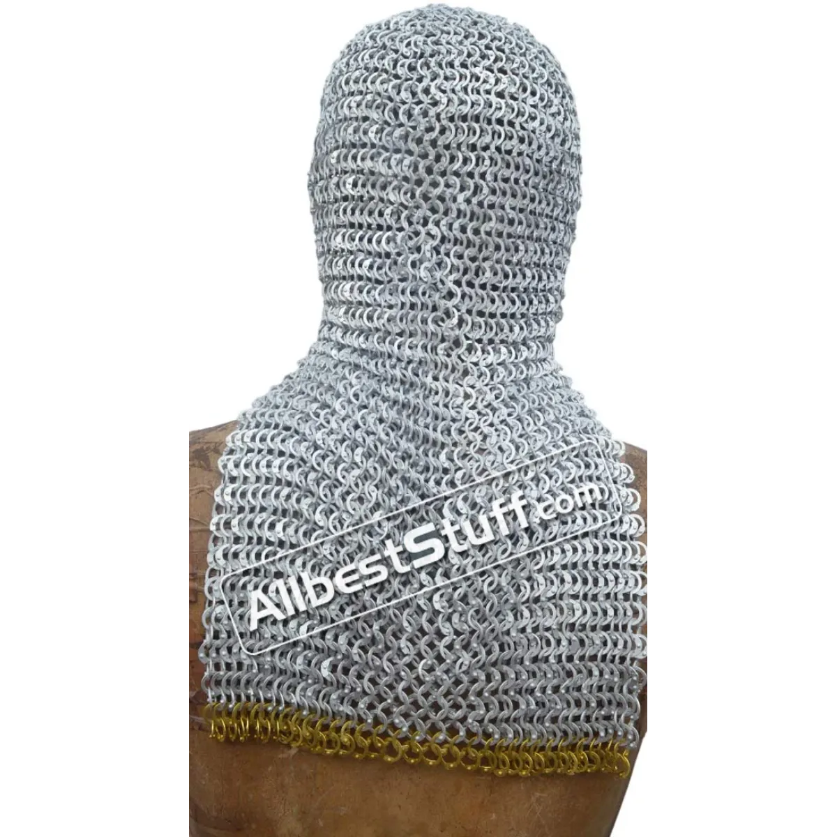 Key Features:Type: Rectangle Shape Maille HoodRing Size:16 Gauge 9 MM, All Rings are Flat, All Rings are RivetedWeave Type: European 4 in 1 Flat RivetedWire Type: AluminumThis is a rectangle bottom mantle coif available in choice of finish and option of adding ventail for face protection, choose from additional options.