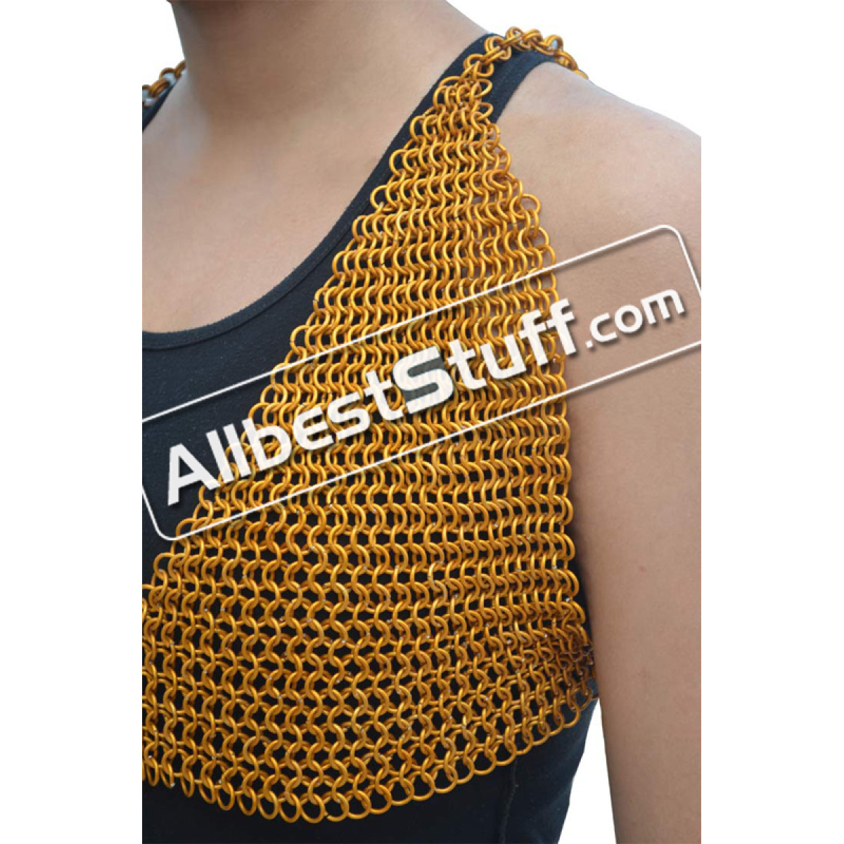 A beautiful chain mail undergarment made from solid aluminum butted rings in Golden finish.