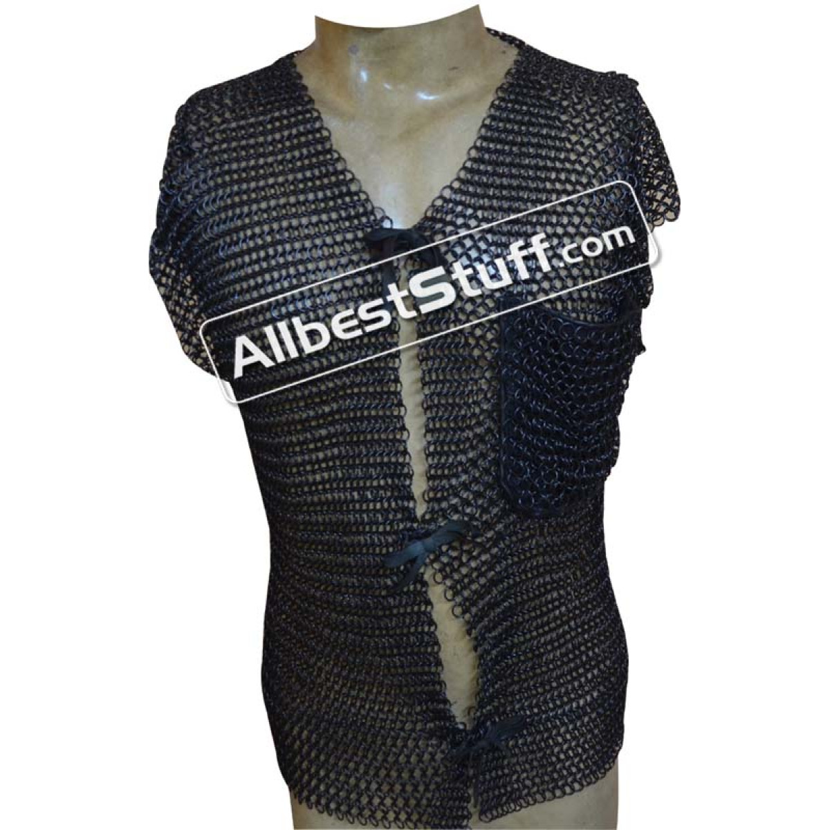 Butted maille shirt offered under this listing represents a modern outlook. Sleeveless and short length like a normal shirt it has a left size pocket supported by leather inside. You can use a black thread or leather string to close it from front.