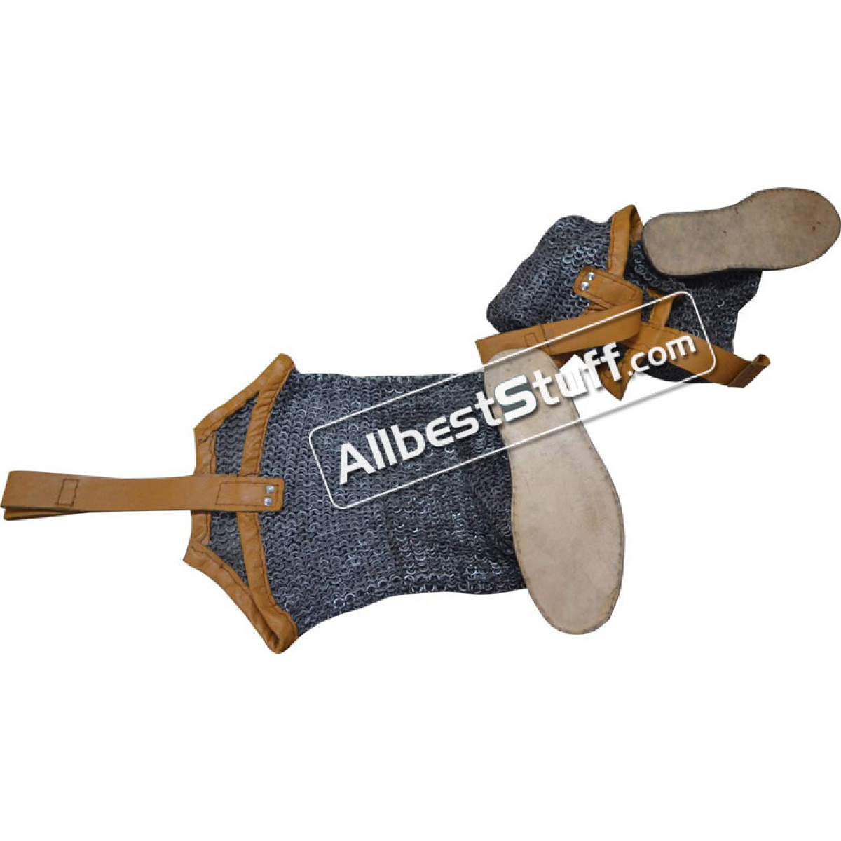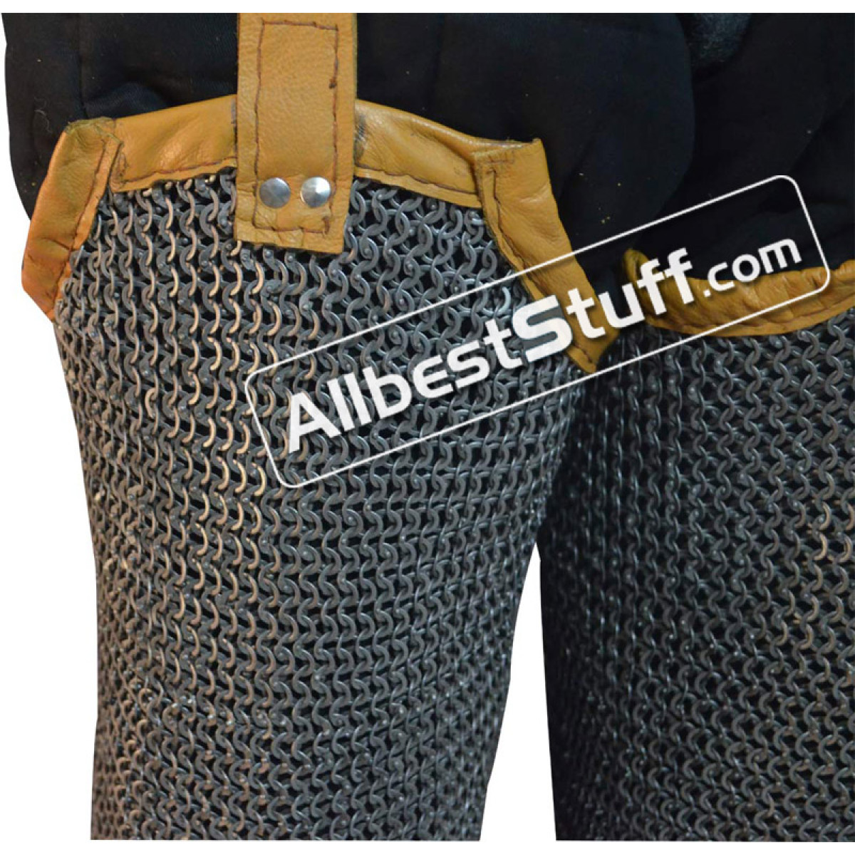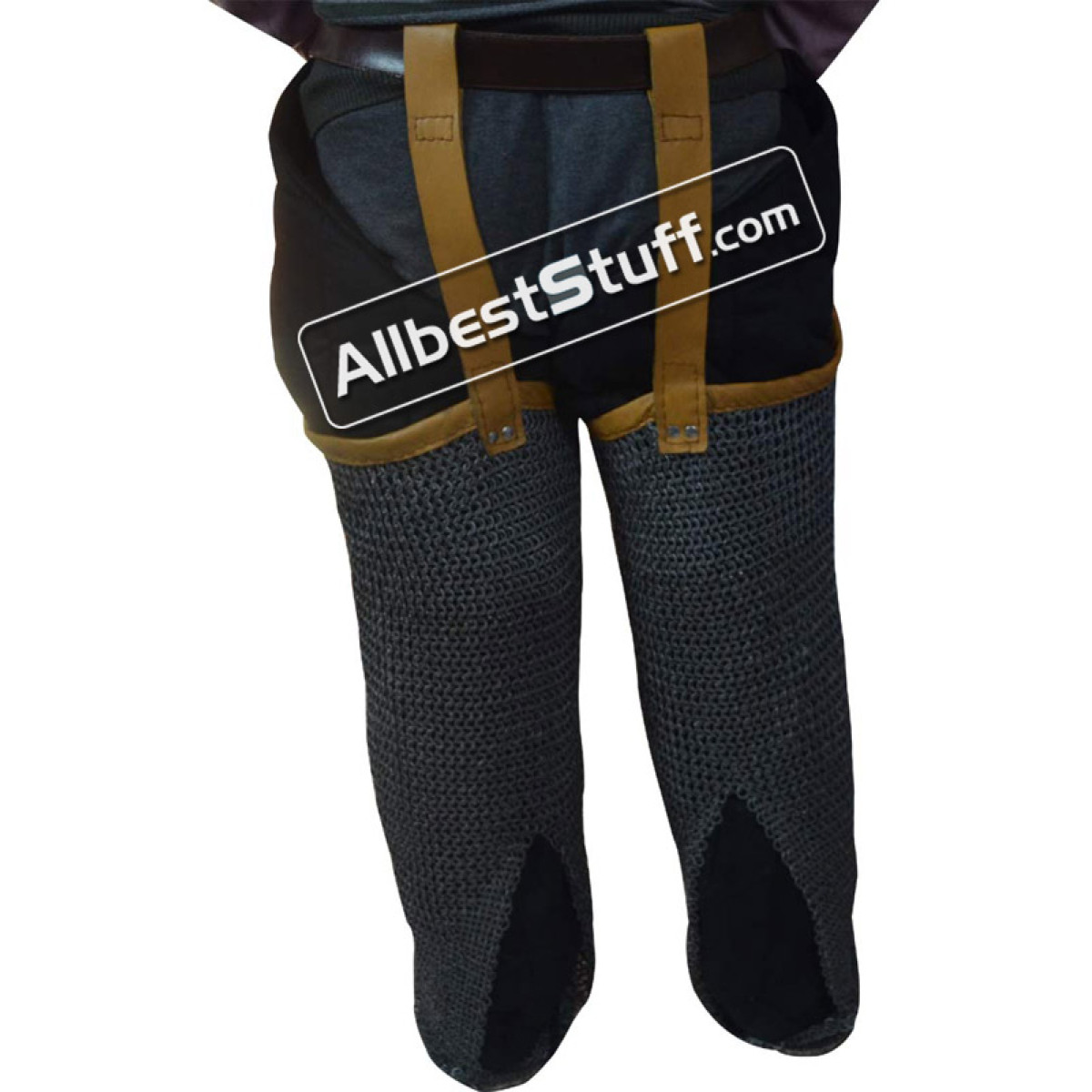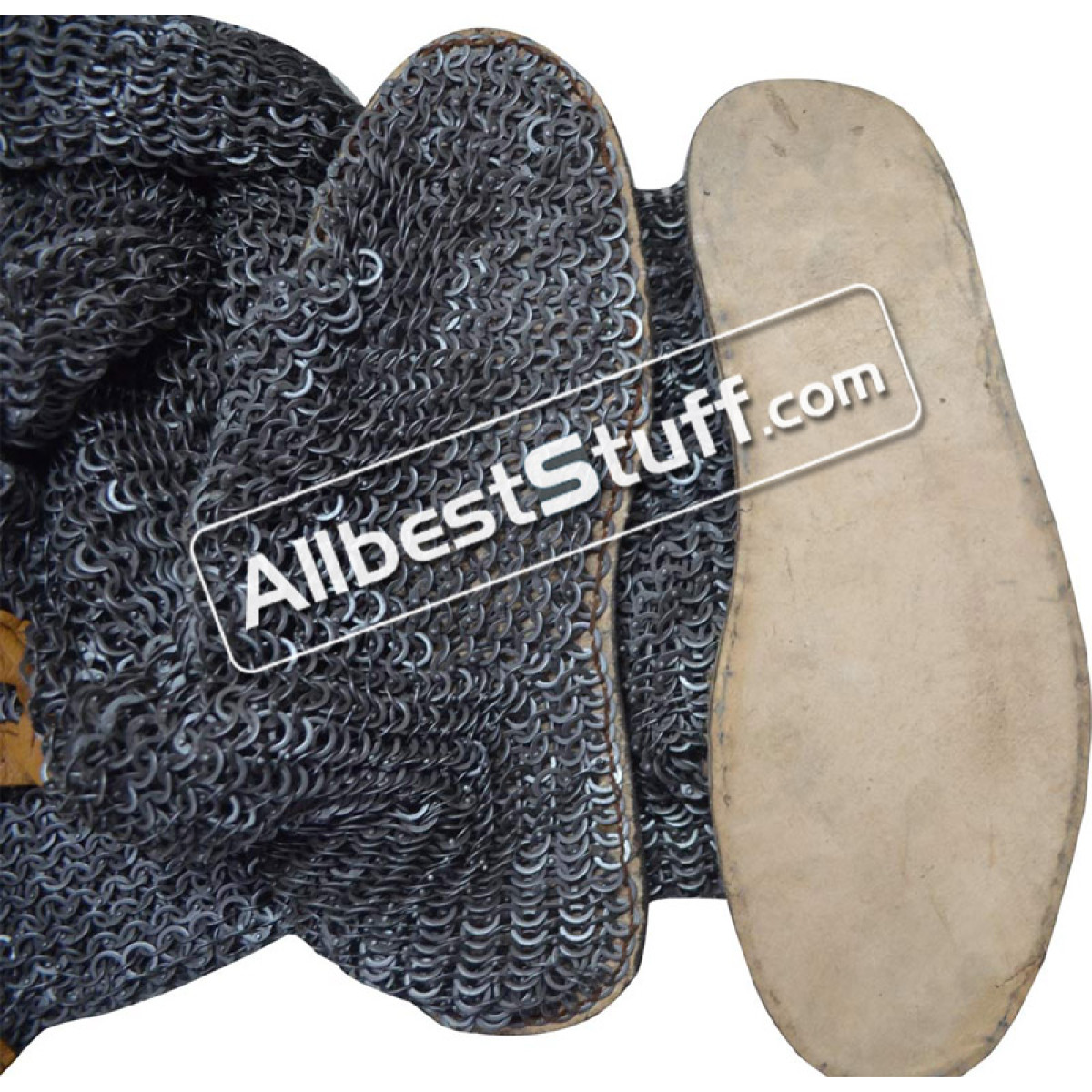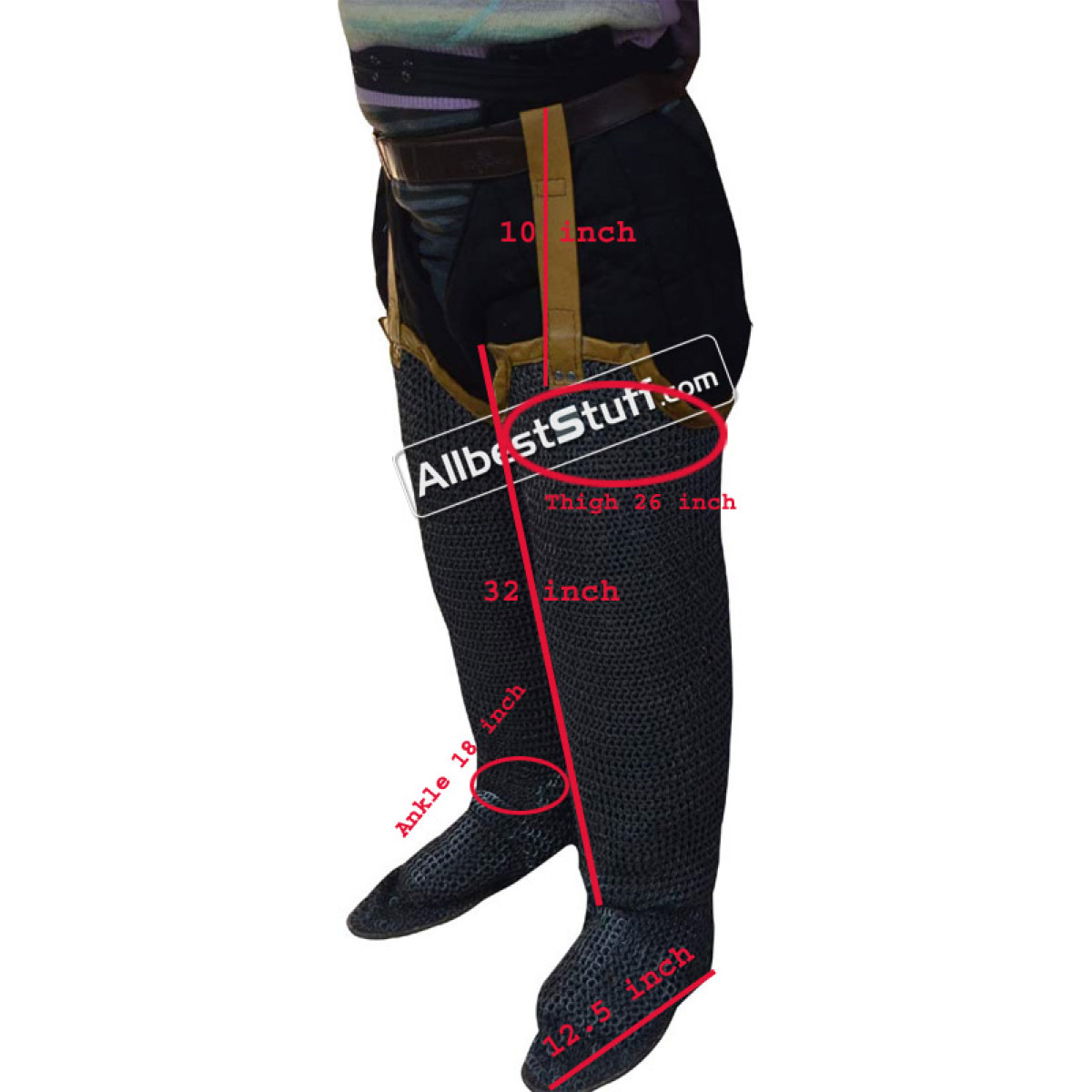 Key Features:Ring Size:18 Gauge 8 MM, One Flat Dome pin Riveted Ring Alternating Flat Solid RingWeave Type: European 4 in 1 Material: Made from Steel WireDimension of Chain Mail ChaussesLeather Strap Height on top as per photo : 10 InchOverall Length from Top (thigh/inseam) to ankle: 32 InchCircumference at Top (thigh): 26 InchCircumference at Ankle: 18 InchMaille Socks with Leather sole : 12.5 inch (** Can be adjusted according to need)Leather Color : Brown