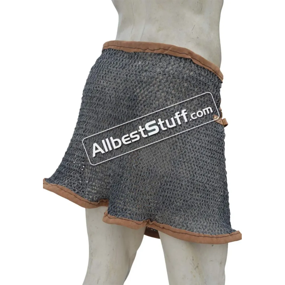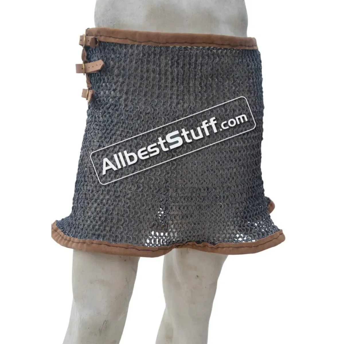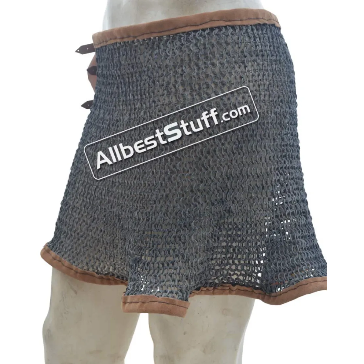 The maille skirt is available under various tying options. You can buy in form of open sheet to tie under own arrangement or additionally choose a closed version by selecting number of fastener to be put on the side OR a leather & thread version. Upon selecting additional option for installing fasteners / or thread with leather, a stitched version of maille skirt will be sent.
