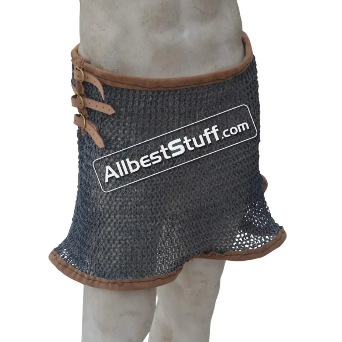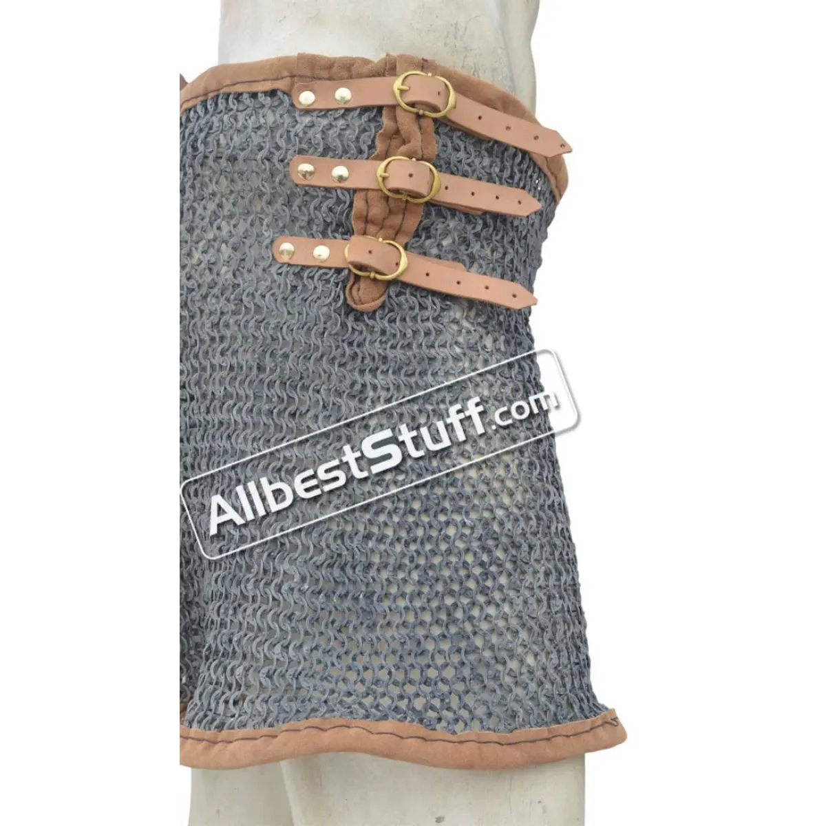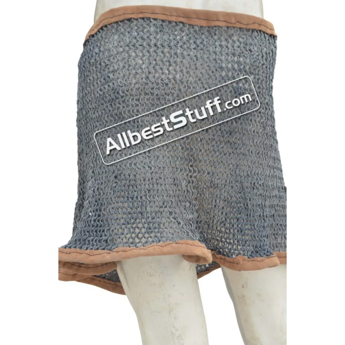 The maille skirt is available under various tying options. You can buy in form of open sheet to tie under own arrangement or additionally choose a closed version by selecting number of fastener to be put on the side OR a leather & thread version. Upon selecting additional option for installing fasteners / or thread with leather, a stitched version of maille skirt will be sent.