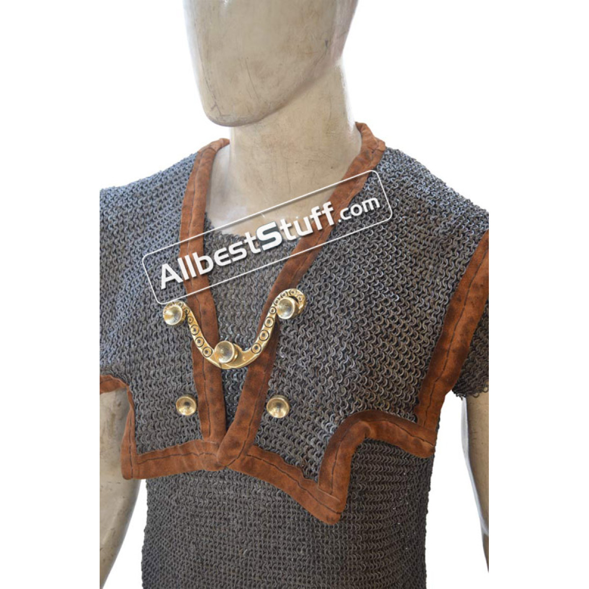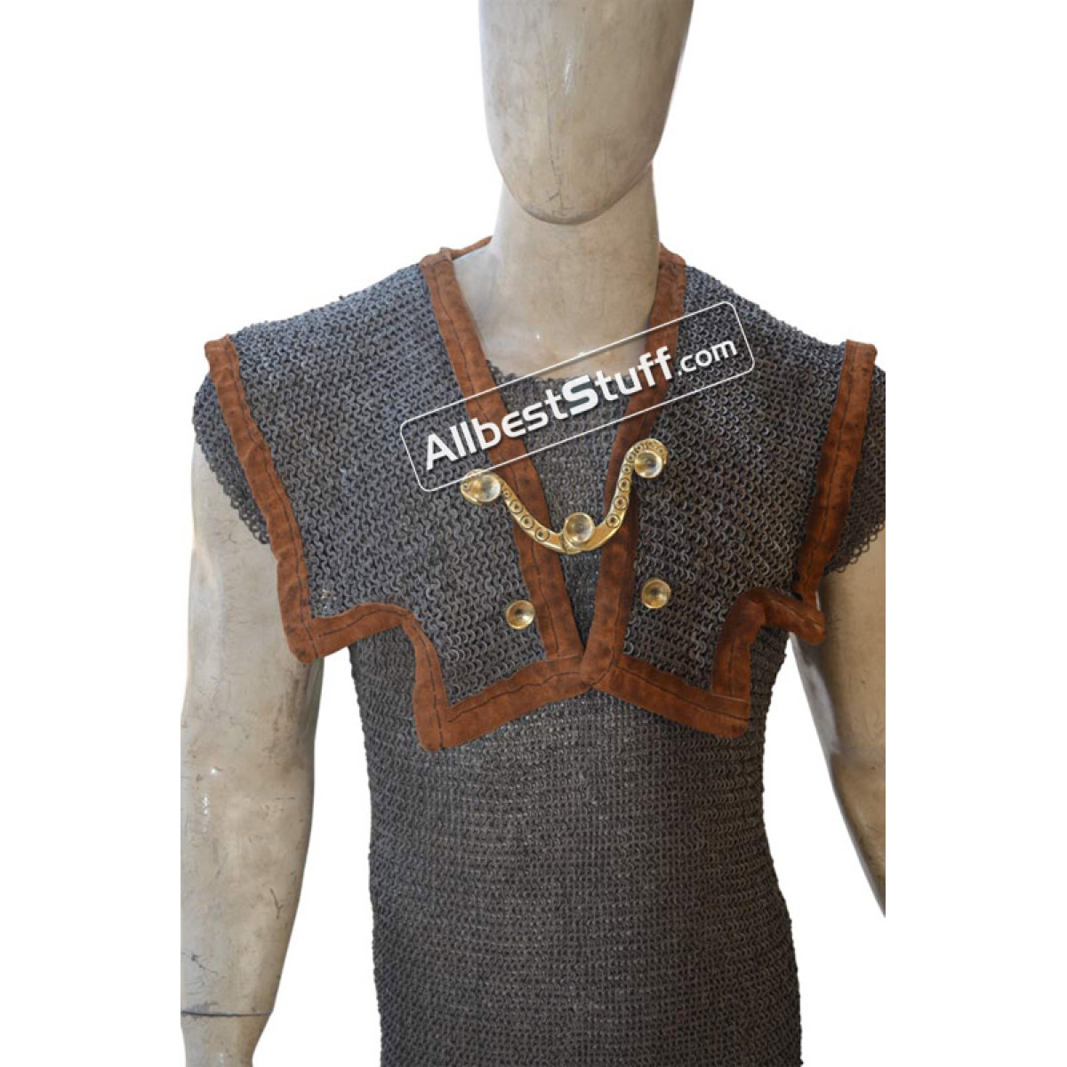 The Romans Maille hamata with shoulder doublet protection. Mail "Hamata" was generally worn by the Auxiliary troops, in the Empire Period; but legionaries also utilized it. Mail is particularly good as protection against slashing or blunt weapon attacks. This is a Mild Steel product that may requires fabric or arming gambeson underneath for maximum protection.