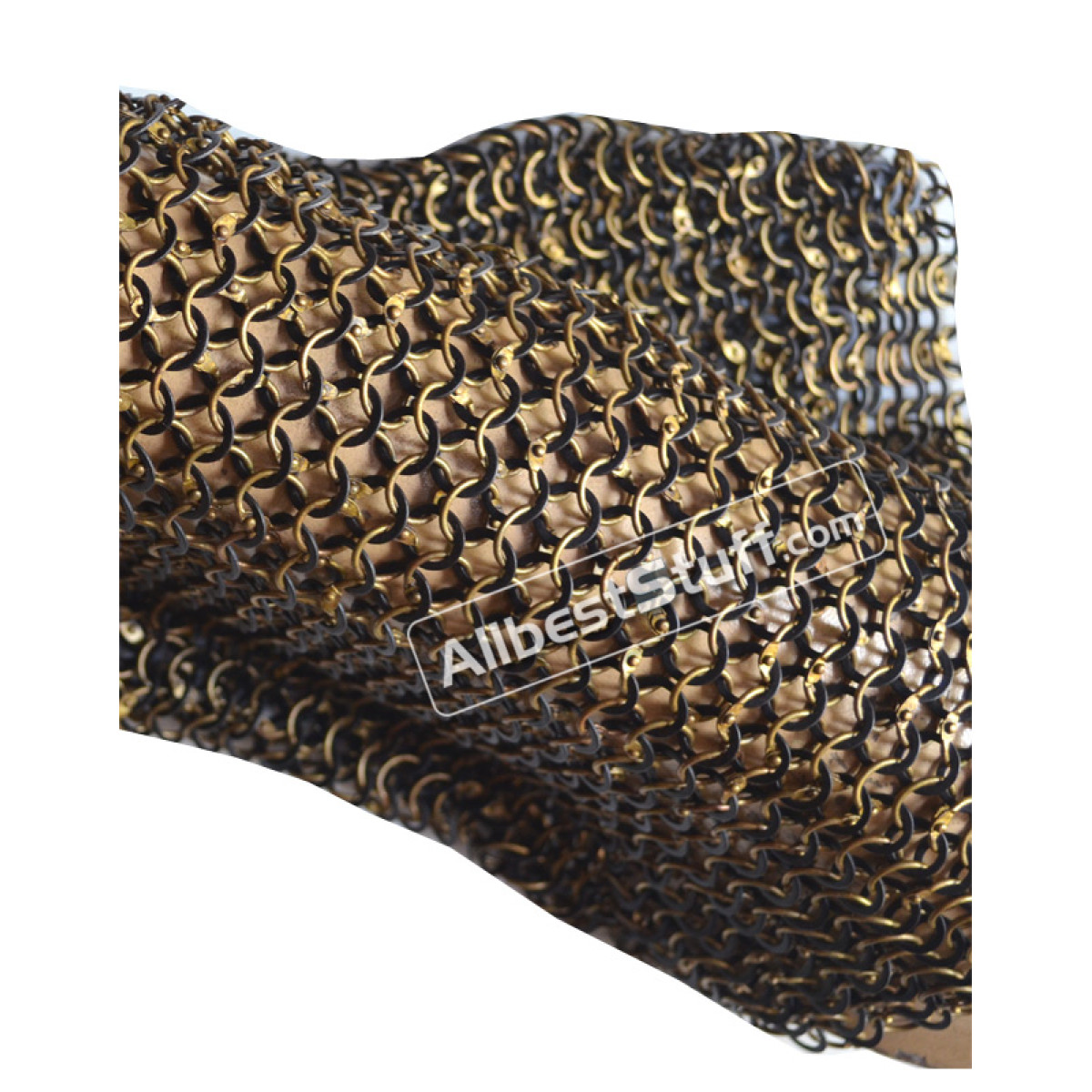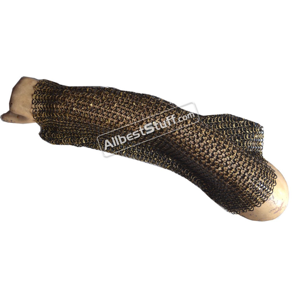 Specifications:Ring Type: 16 Gauge 9 MM Round Dome Riveted Ring with alternating solid ring.Sleeve Style: Fully ClosedLength of Sleeve: 21 inchesSleeve Circumference at Armpit: 24 inchesSleeve Circumference at Wrist: 14 inches1Pair for both armsSolid Brass Rings are Lacquer coated & you can choose finish for solid rings, we are offering three choice of finish (Oiled, Blackened or Galvanized)
