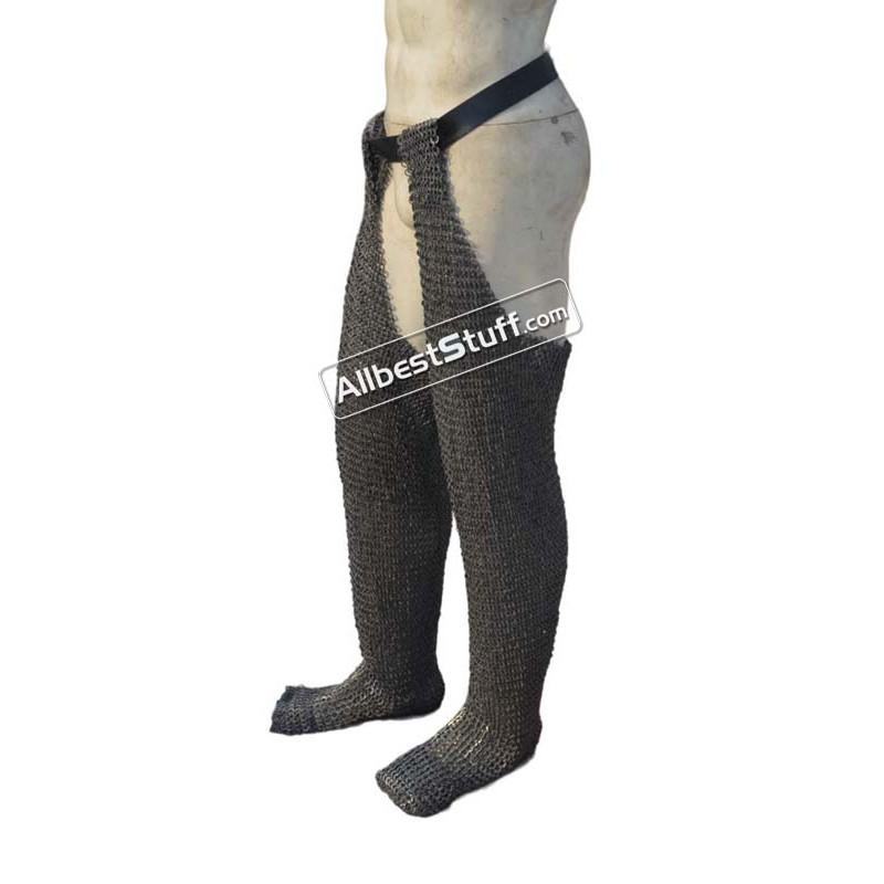 Key Features:Ring Size:18 Gauge 9 MMWeave Type: European 4 in 1 Wire Type: Wedge SteelDimension of Chain Mail ChaussesOverall Length from where you tie your belt to ankle: 35 InchCircumference at Top (thigh): 26 InchCircumference at Ankle: 16 InchShoe Cover: 8 Inch