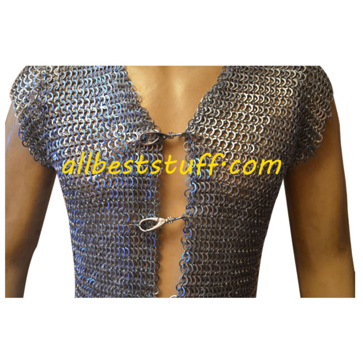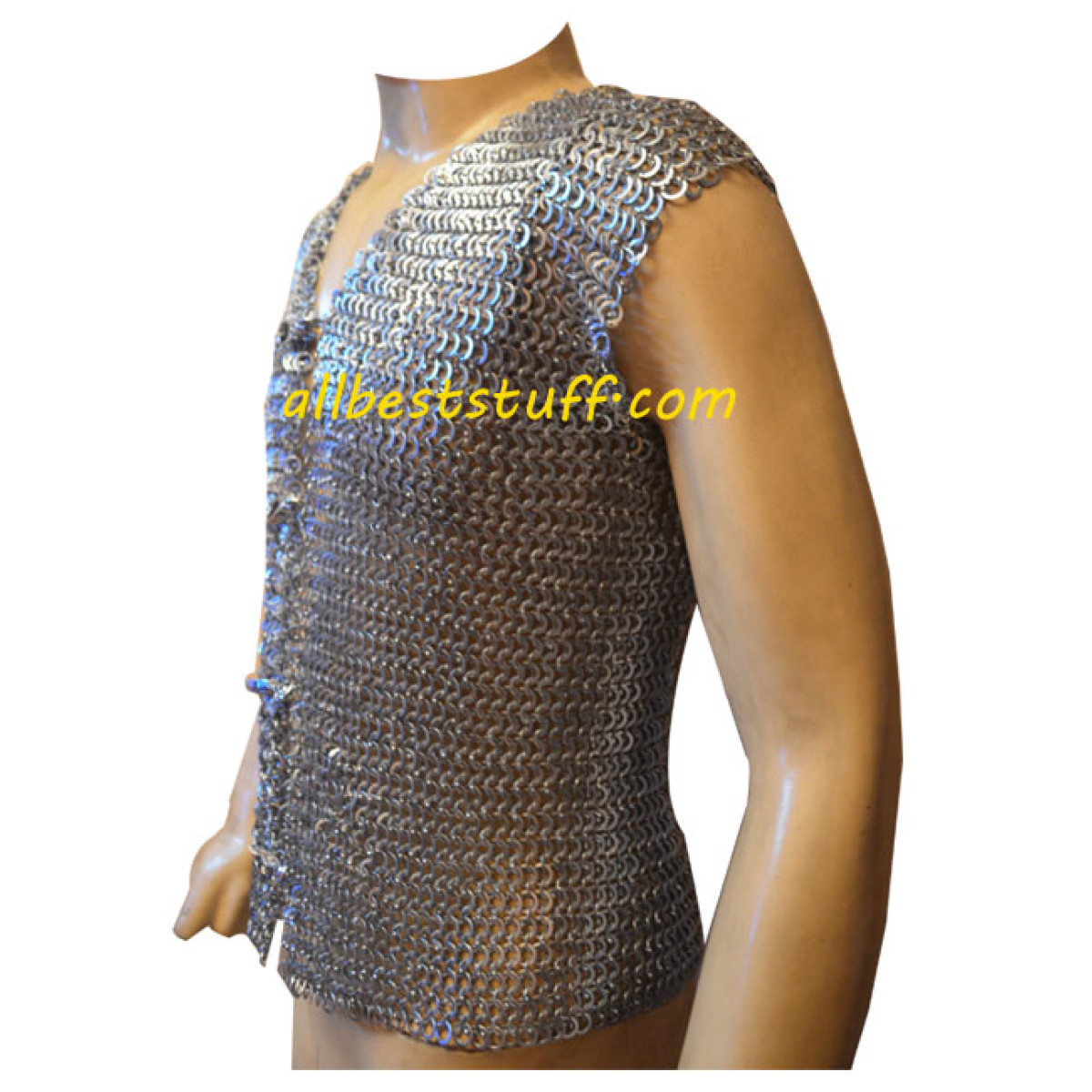 This listing is for our exclusive Chain Mail Club Jacket, a very stylish strong mild steel chain mail Jacket with zinc coating to protect from rust and create a style statement. Matching metal clasp in front to tie the Jacket, simple easy installation of clasp through metal rings which can be easily adjusted according to need . Without sleeves & wearable like a normal shirt made with mild steel ring size 18 Gauge 9 mm. The chain mail rings are dome riveted with popular 4 in one weave, we offer top most ring quality & clean punched rivets. Please read the measurements very carefully as this type of clothing do not stretched much and require few extra inches for comfort & long term use.