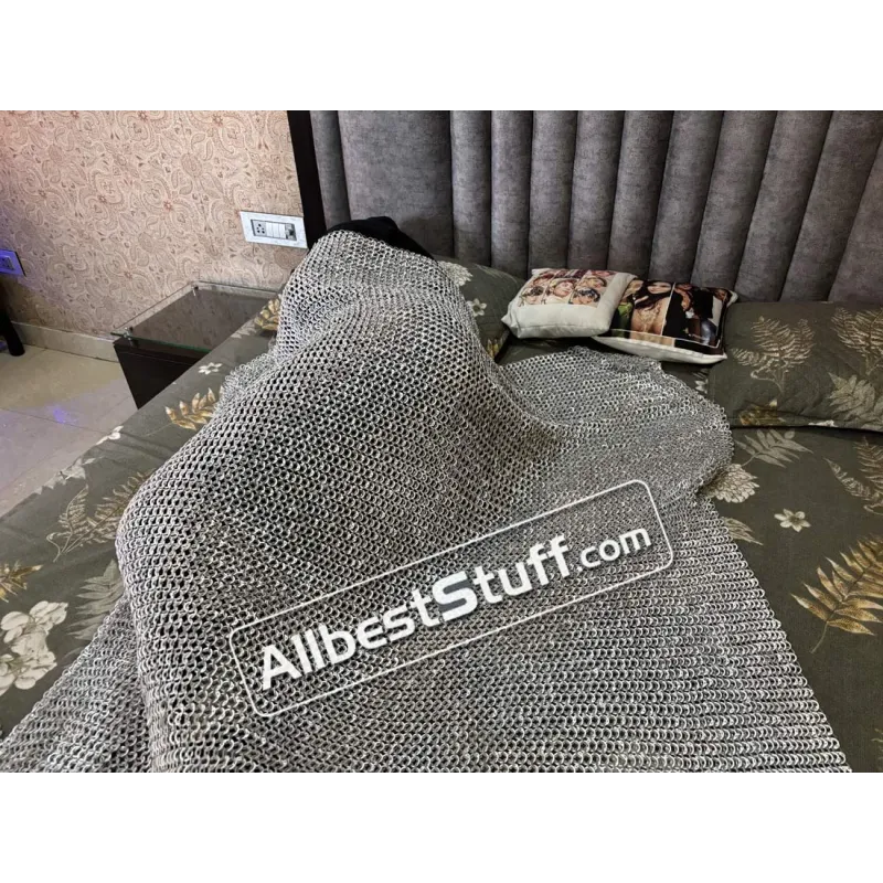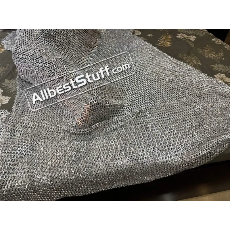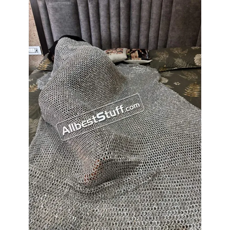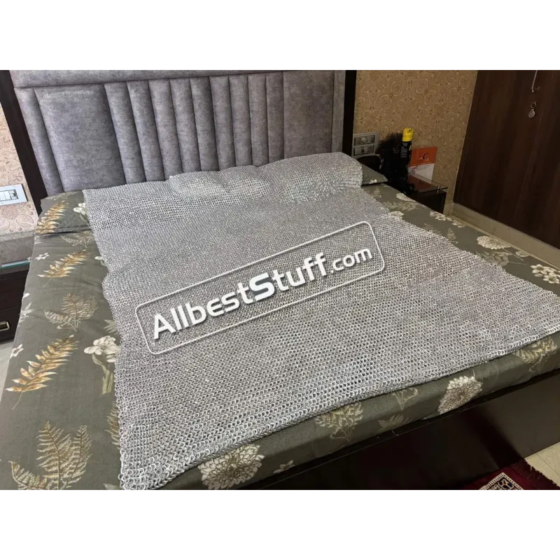 Key Features:Item Type: Aluminum Chain Mail Sheet (Blanket)Ring Type: 16 Gauge10 mm , Aluminum One Flat Wedge Riveted Ring with Alternating Flat Solid RingEuropean 4 in 1 Weave typeWidth : 152 cmHeight : 204 cmFinish: Finish to Choose from available options