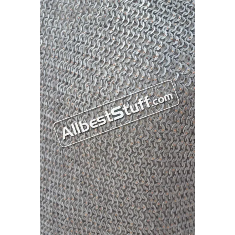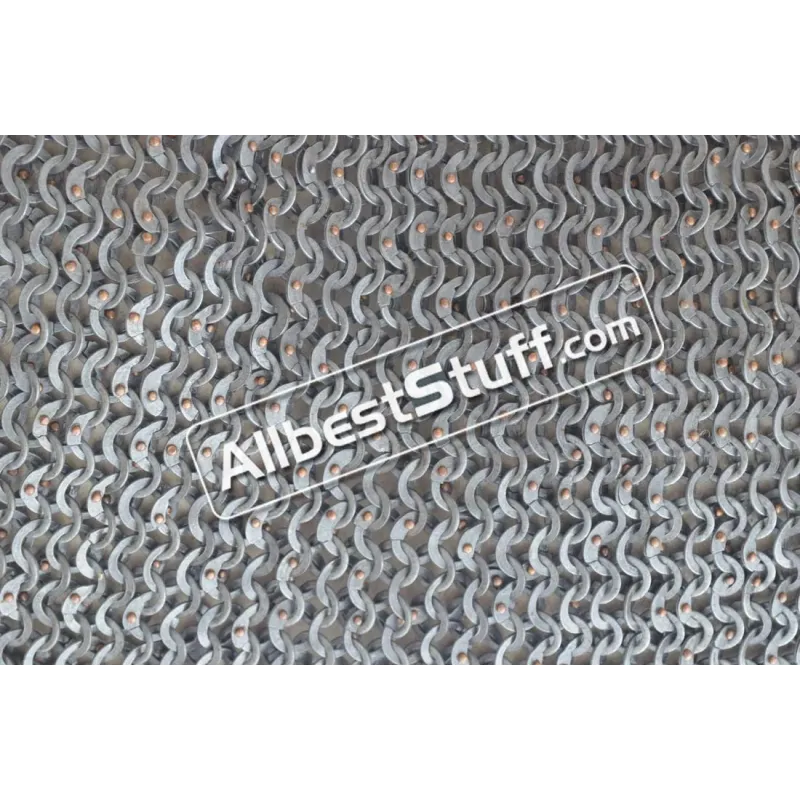 The chainmail rings are made 18 Gauge steel wire, the pin rivets used to seal the chainmail rings are made of solid copper. It is a unique combination of steel and copper offered in this medieval chainmail hauberk. The copper rivets are carefully set to seal the mild steel ring and weaved in European 4 in 1 ring pattern.