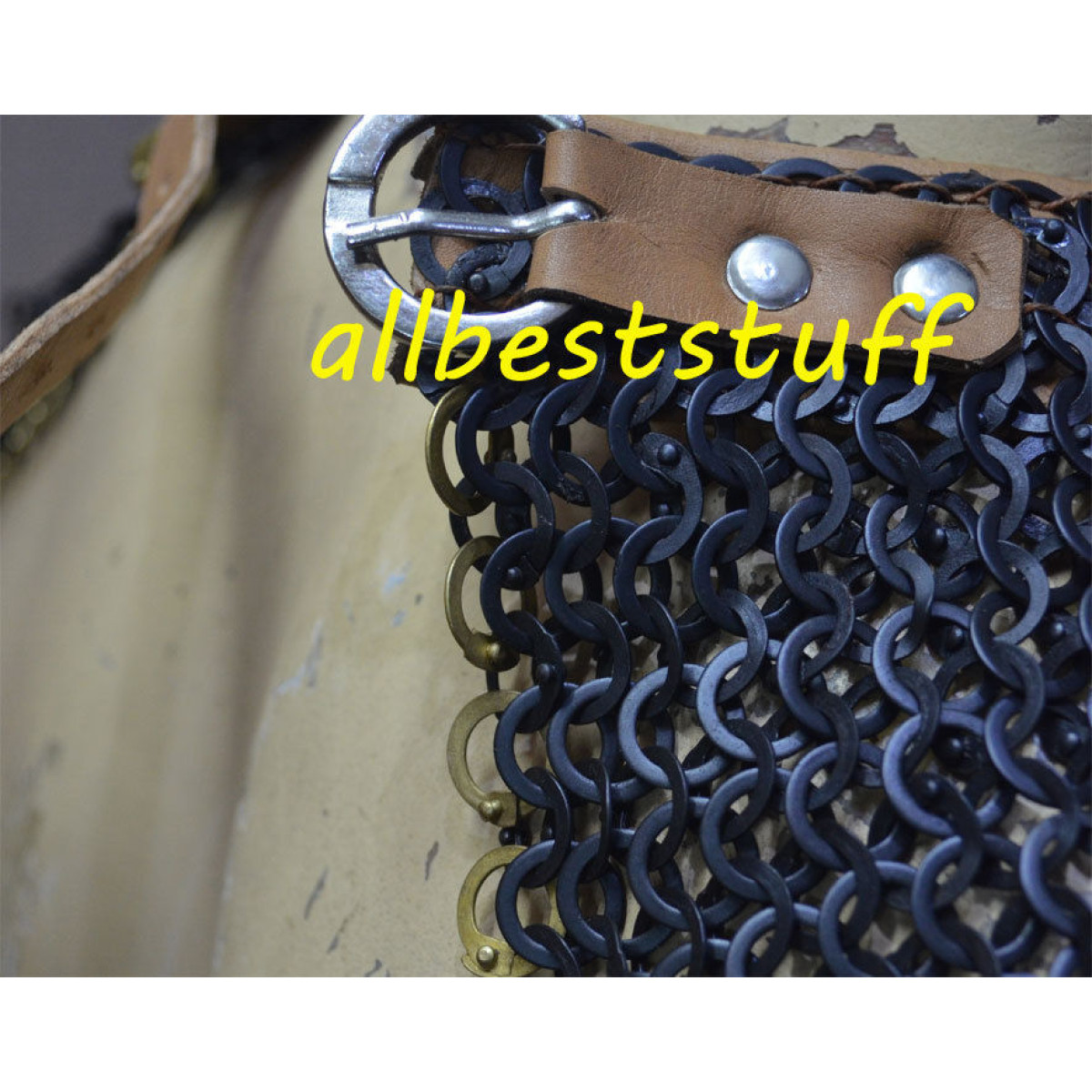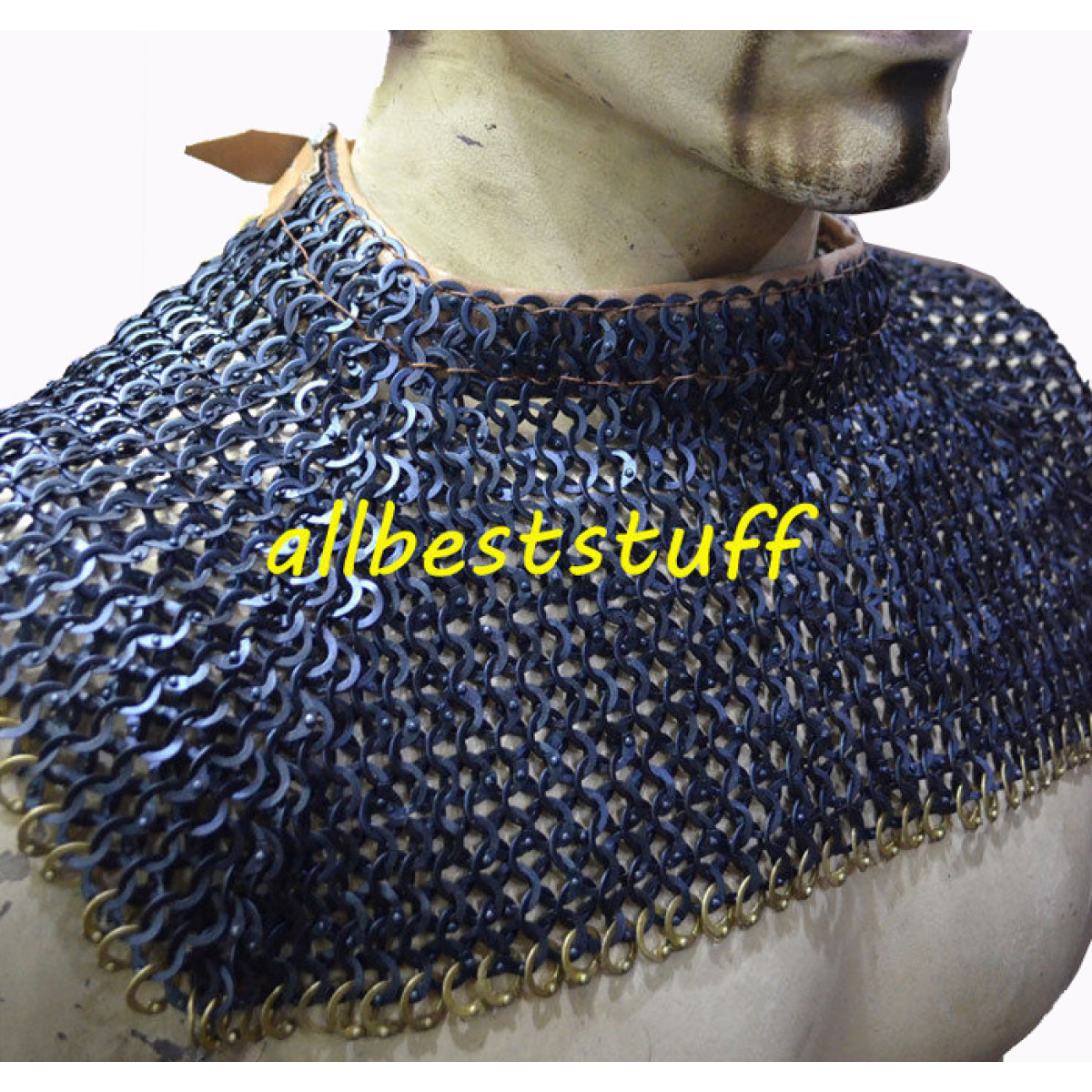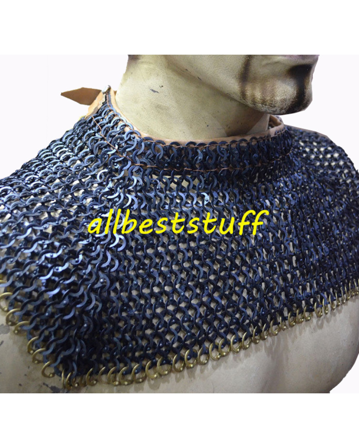 Made from 18 Gauge Steel with combination of 1 dome riveted ring and alternate solid ring. (NOTE: Design is only in front since this is a small length collar), very simple and sleek design with single row of original brass ring included a perfect look to your medieval costume. Stitched with original leather to give comfort to your neck using single brass buckle at the back which will never rust.Dimensions: Neck Circumference: 19 inchesLength: 6-7 inchesSingle Row of Solid Brass Row Included.
