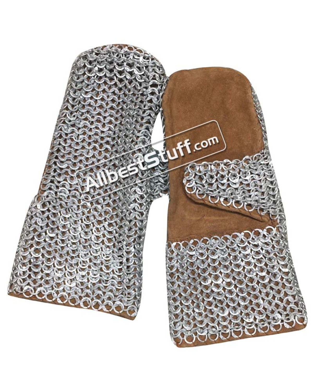 Pair of leather based chain mail mittens, light weight made with Flat Riveted Aluminum Rings.