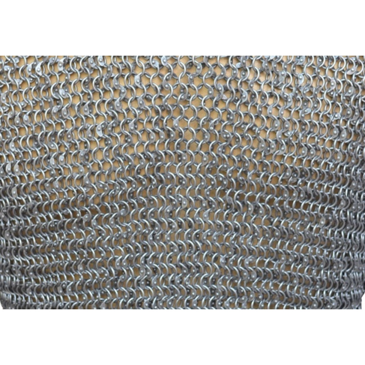 Full Round 8 MM 17 Gauge Dome Riveted Maille SheetKey Features:Ring Size:17 Gauge 8 MMWeave Type: European 4 in 1 MediumWire Type: Mild Steel (Iron)Dimension of this Maille SheetSheet Width: 12 InchSheet Height: 12 Inch