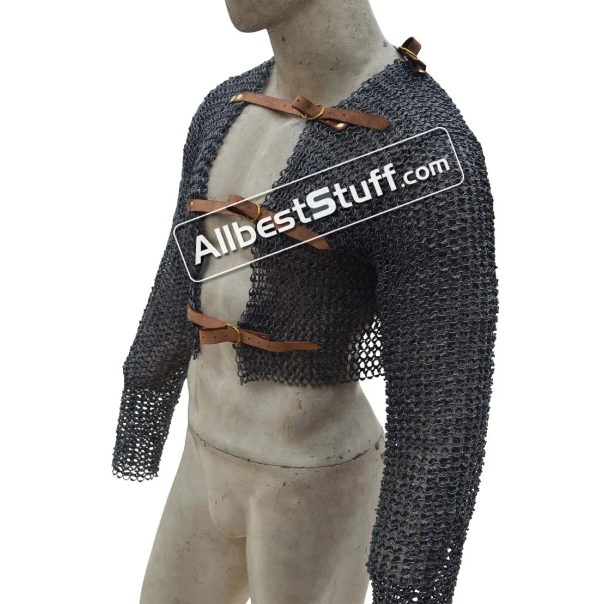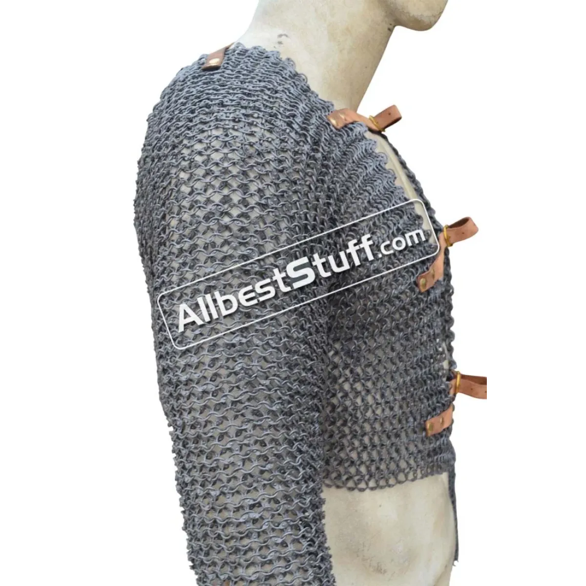 Specifications:Ring Type: 17 Gauge 8 MM Full Round Dome Pin Riveted RingMaterial: Made from Mild Steel WireChest Size: 35-40 inches, the 2 pieces will give approx. 8-9 inches of chest and back coverage on each side03 Nos Leather fasteners to close the front.Sleeve Style: Fully ClosedLength of Sleeve: 20 inches measured from under the armpit area to wrist (Full Sleeve)Sleeve Circumference at Armpit: 20 inches (Default) choose preferred circumference from additional optionsOverall Length from Shoulder: 16 inchesFinish: 03 Finish to choose from