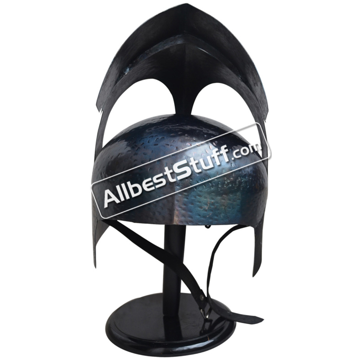Specifications:Material :18 Gauge mild steel Height: 7.5 inchesApprox Circumference: 31 inchesFinish: Hammered & Fire BlackInclusions: Leather Inner with Chin Strap