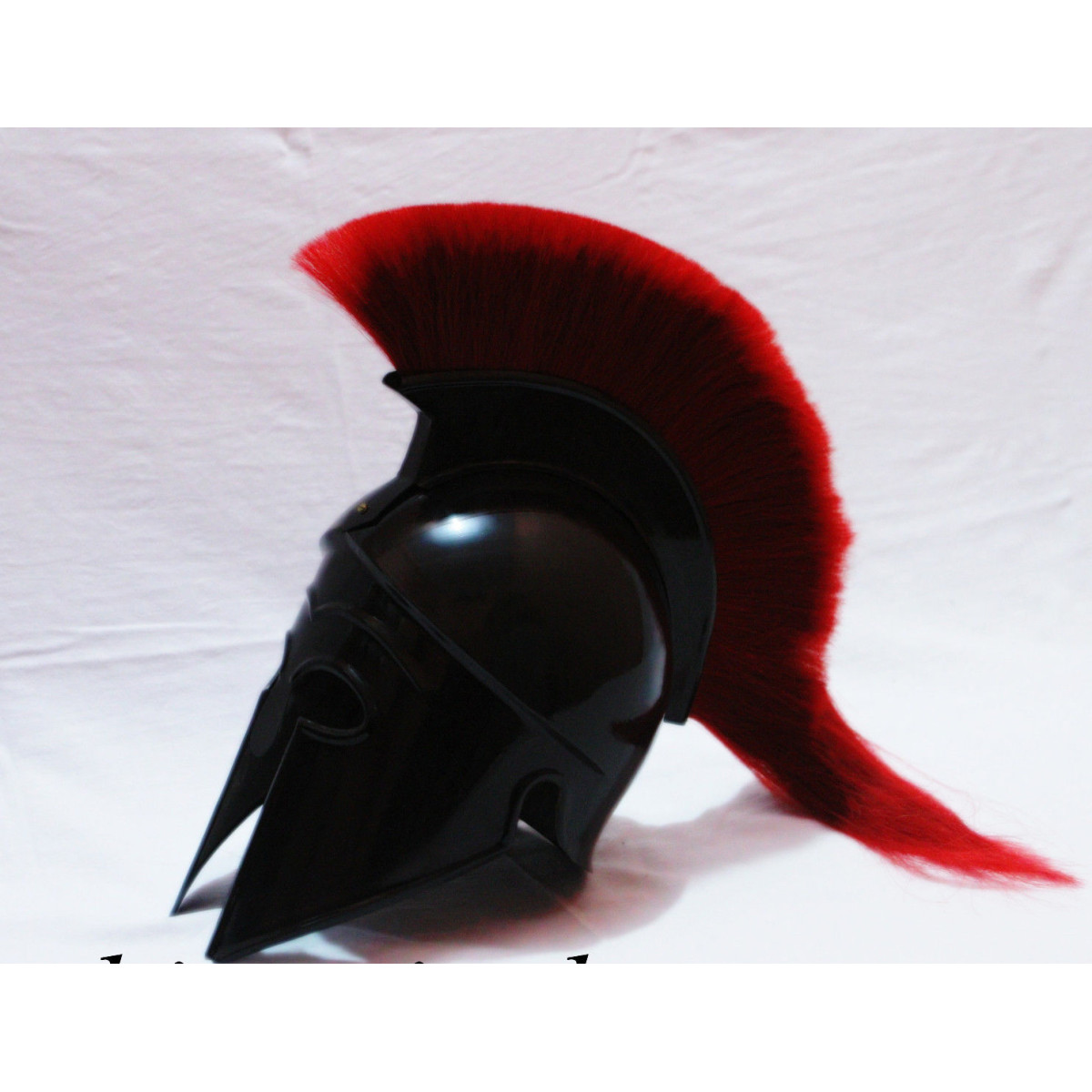 Hand Made Corinthian Helmet High quality. The most popular among all Greek helmets and comes with variety of plume options. We are offering here polished steel in black finish with Red plume. Standard Adult Size fully wearable.