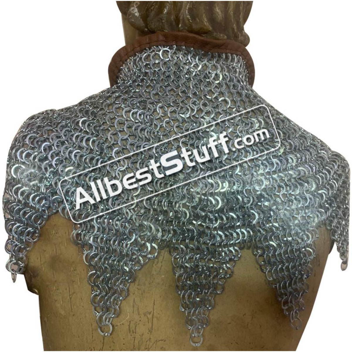 Dimensions: Ring type; 18 Gauge 9 mm, Rings are Flat Riveted with Alternating Solid RingNeck Circumference (opening): 27 inches, supported by 2 buckles to adjust it to the neck and padding if any.Length: 11-12 inches including Zig ZagBottom Circumference: 50 inchesFinish: Three finish to choose fromLeather edging with 2 zinc buckle on topZig Zag design