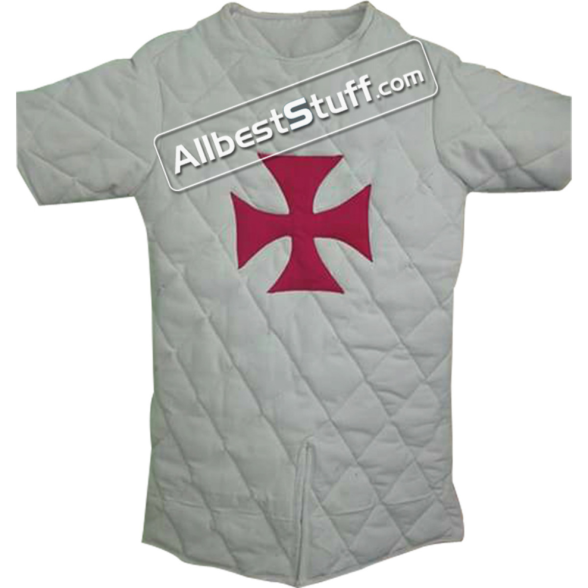 White Crusader’s Gambeson is in excellent condition. Being white with a red cross, it is one of the two color schemes for the Knights Hospitaller. Available in different chest sizes and is 34-35’’ long from shoulder to bottom hem. The Red cross is stitched to the front. Cross color will vary depending upon the base color. Write us for any questions and some will respond quickly.