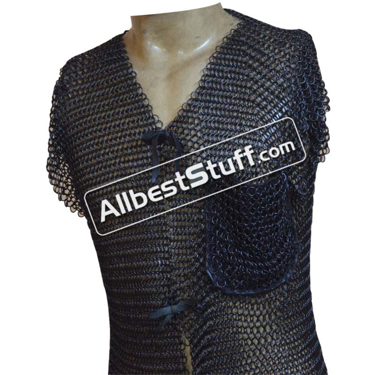 Large Size Butted maille shirt offered under this listing represents a modern outlook. Sleeveless and short length like a normal shirt it has a left size pocket supported by leather inside. You can use a black thread or leather string to close it from front.
