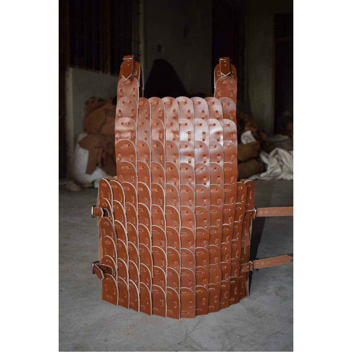 This Leather Lamellar is a perfect example of medieval style and quality materials. It is made from high quality and genuine buffalo leather of thickness 2-3 mm. It will represent a true warrior image in the field of larp combat. It can also make an excellent gear for plays and reenactments.