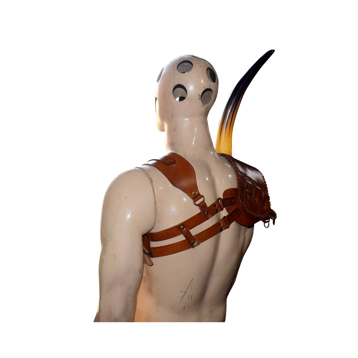 Fitted with adjustable straps at the chest and armMade of real 2-3 mm thick leatherBrass buckles and rivetsGreat for LARP, Theater and SCAOne size fits most adults