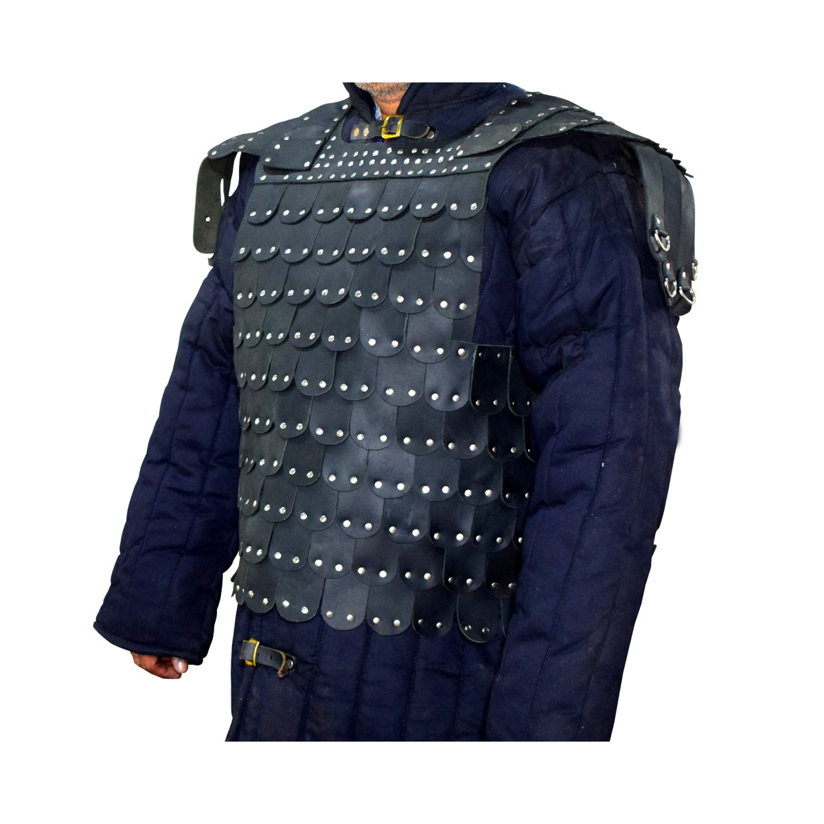 This Armor is a perfect example of medieval style and quality materials. This Armor is made from high quality and genuine leather of thickness 2-3 mm. We are providing leather tasset with it. It will represent a true warrior image in the field of larp combat. It can also make an excellent gear for plays and reenactments.