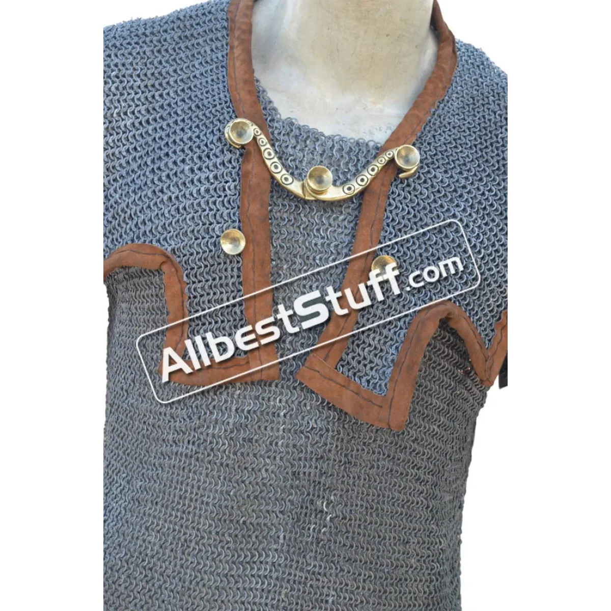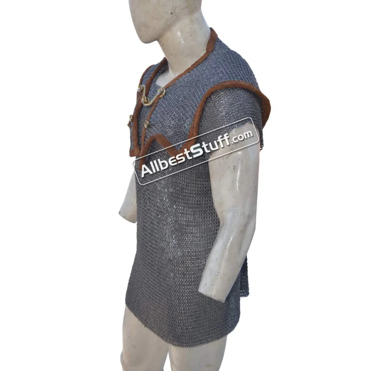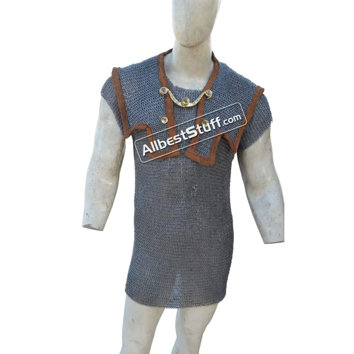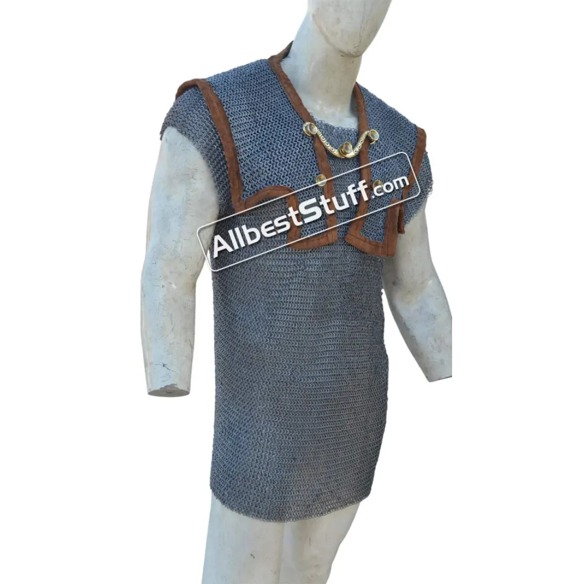 The Romans Maille hamata with shoulder doublet protection. Mail "Hamata" was generally worn by the Auxiliary troops, in the Empire Period; but legionaries also utilized it. Mail is particularly good as protection against slashing or blunt weapon attacks. This is a Mild Steel product that may requires fabric or arming gambeson underneath for maximum protection.