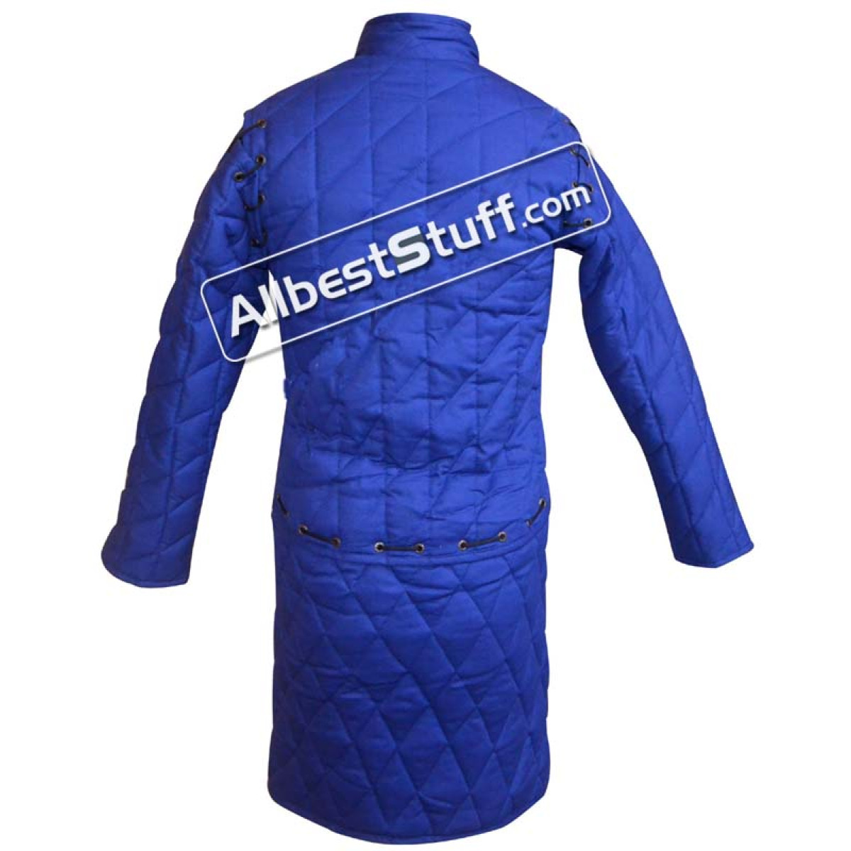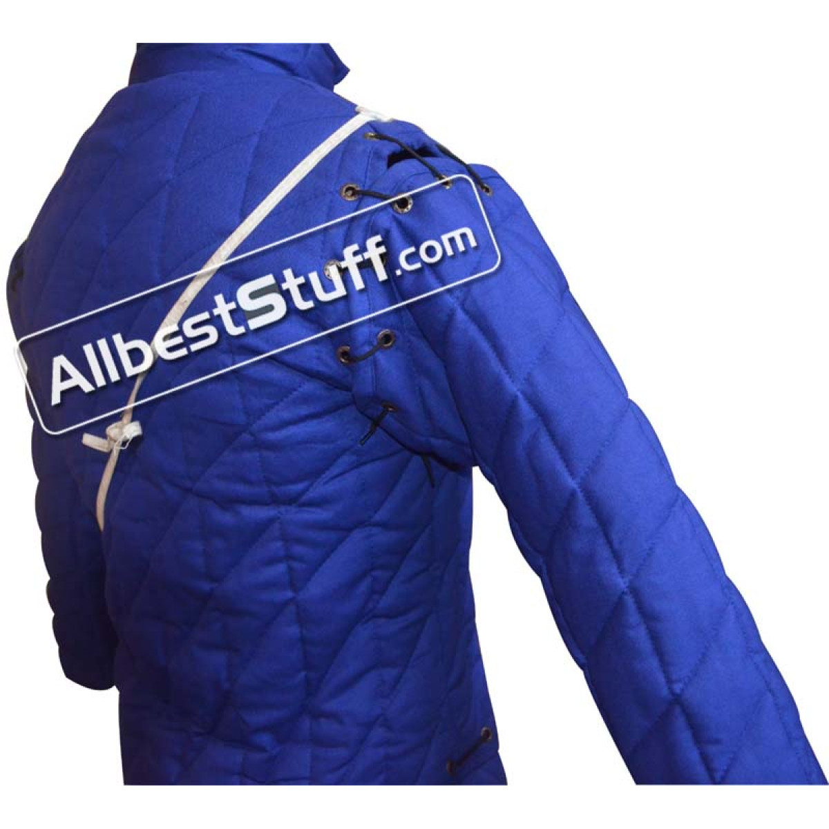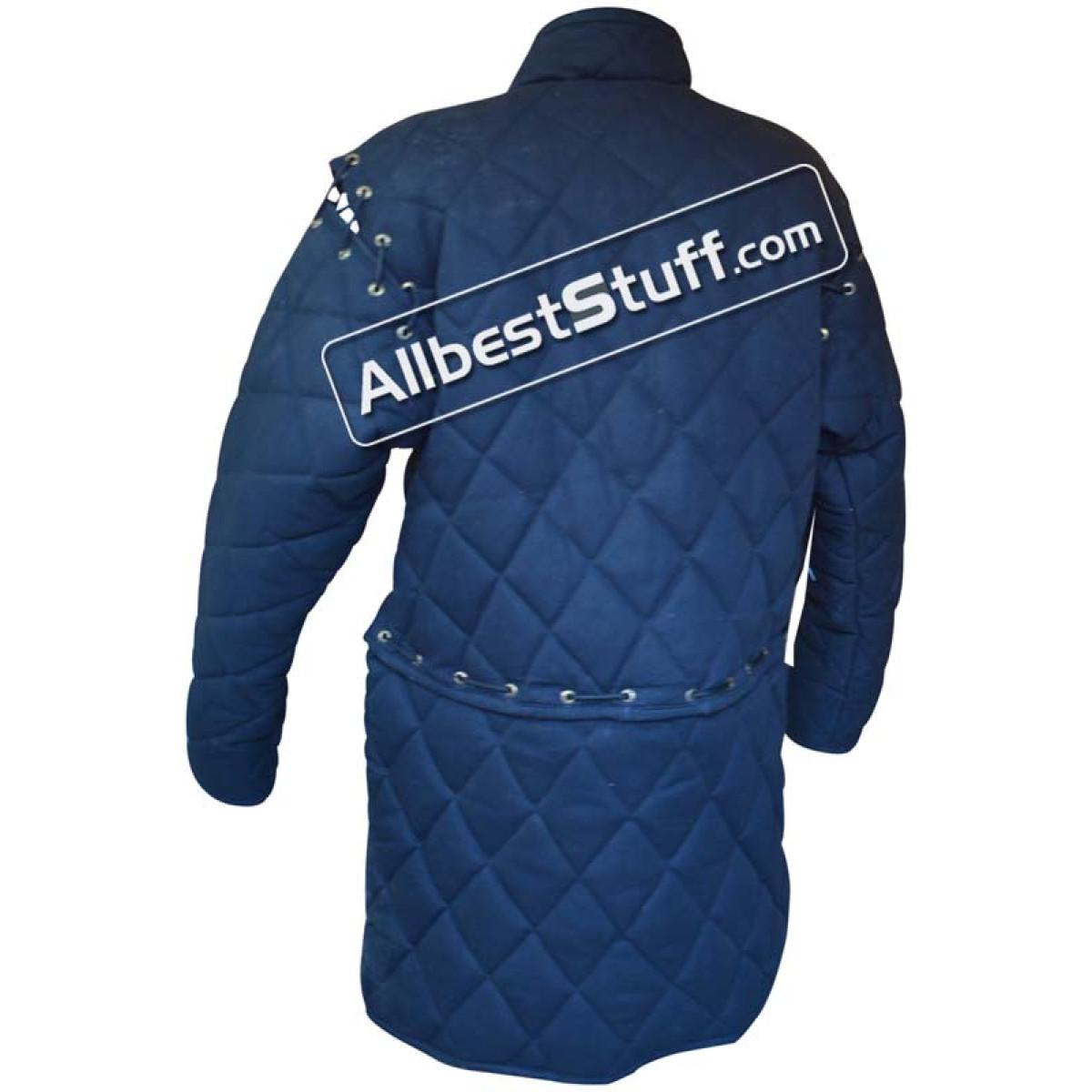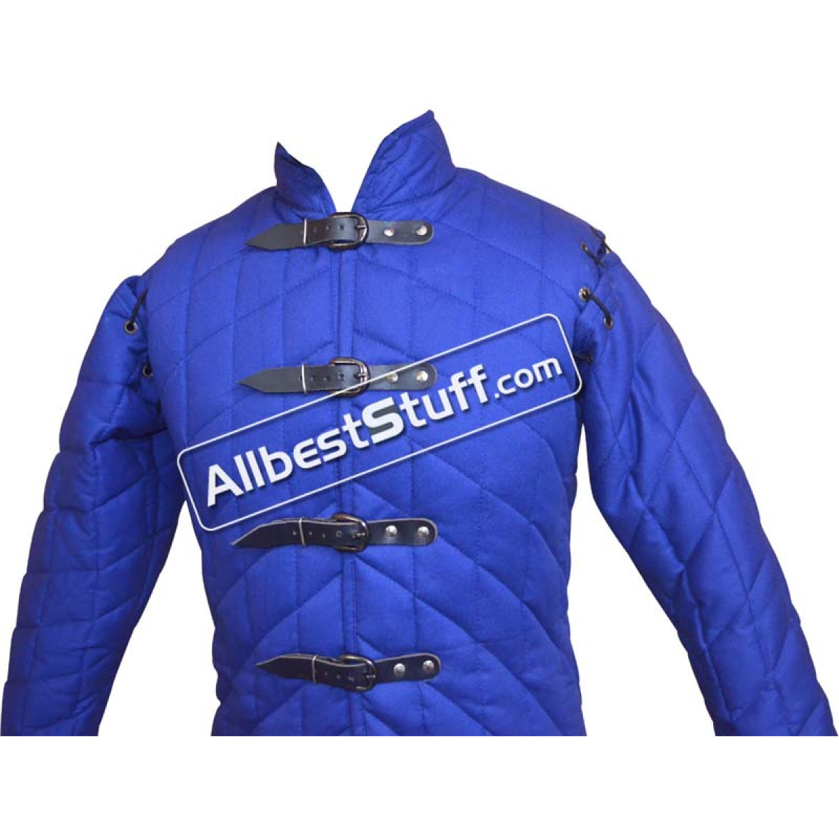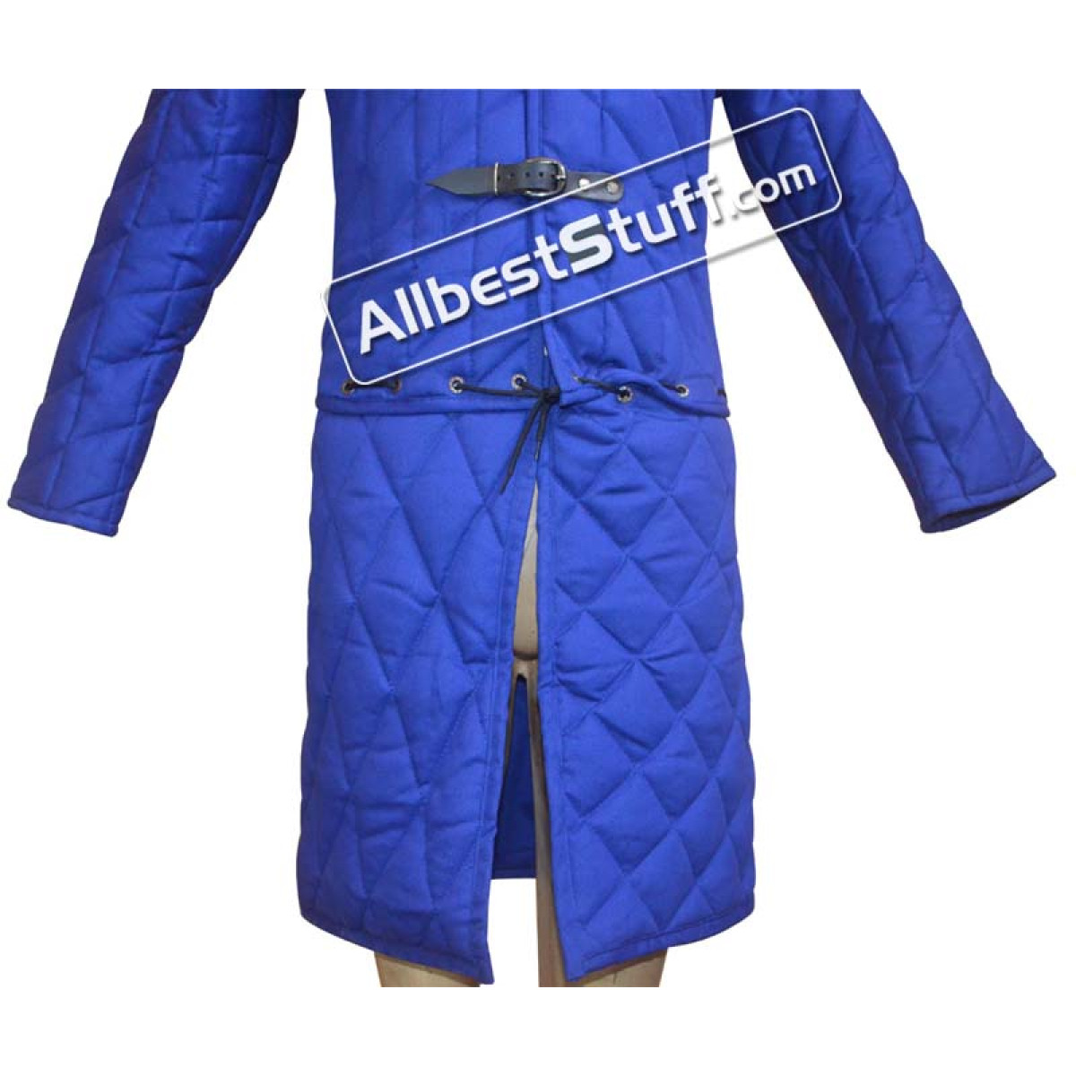 Medieval Arthur Full Sleeve Padded Gambeson made from High Quality thick Cotton, Leather & Solid Brass Buckles for closing and comfort wear. the padded armor includes a gambeson, tassets, and sleeves in a versatile set that can be worn in different combinations. The padded gambeson can be worn under any kinds of armor. The tall collar increases comfort around the neck, as well. The Armor padding is stitched in a pattern that allows mobility and keeps the padding in place. Metal eyelets run along the edges of the arm holes and bottom helm of the sleeveless gambeson, allowing the addition or removal of sleeves as desired.