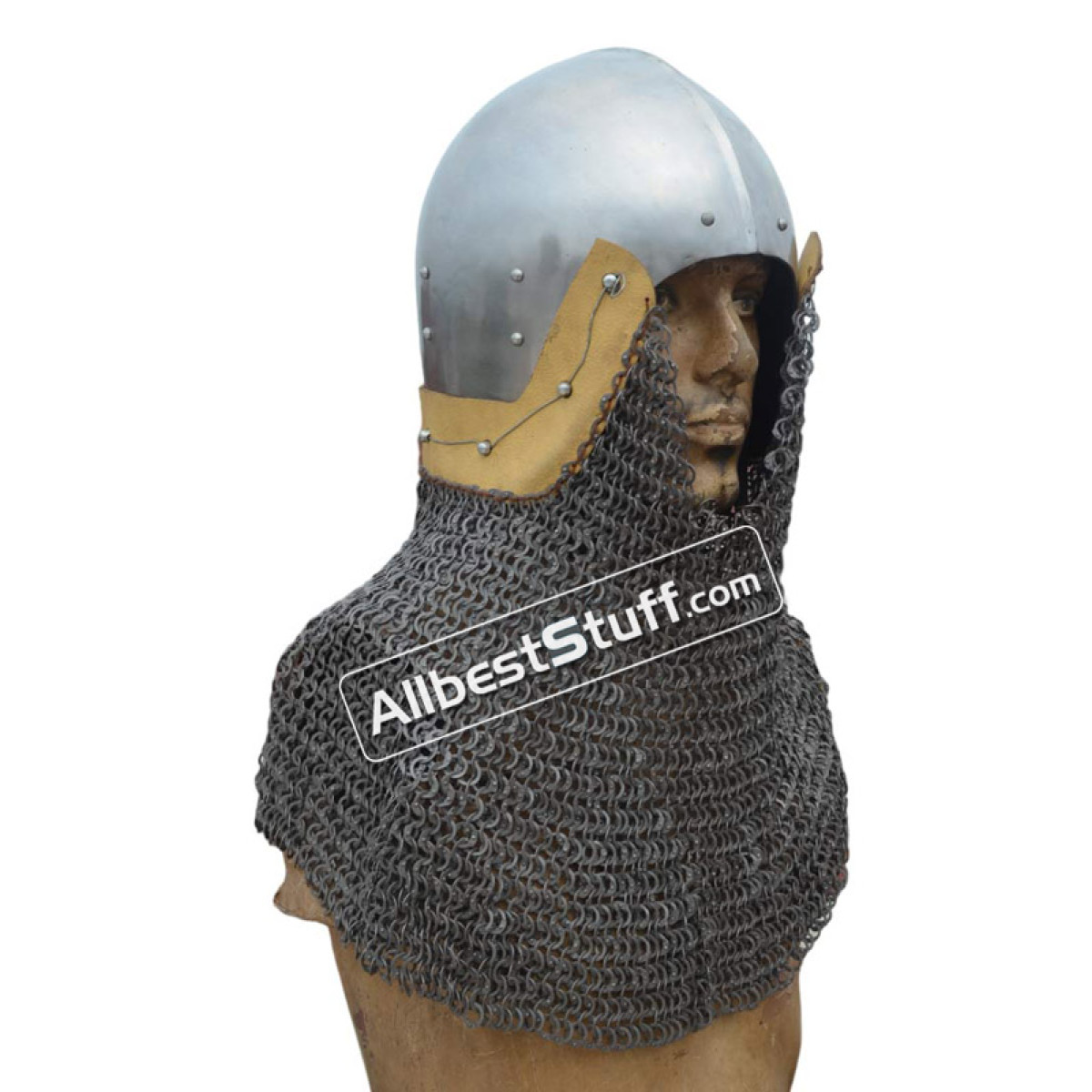 The first reference to a bascinet, was in the Italian city of Padua in 1281, being worn by infantry. It is believed that the bascinet evolved from the cervelliere, which was worn with a mail coif, as either the sole form of head protection or beneath a great helm. This is a fully battle-ready, authentic replica of a helmet from approx. 1440 a. d. found in northern Italy. The original is displayed in the Wallace Collection in London. Standard Adult Size fully wearable.