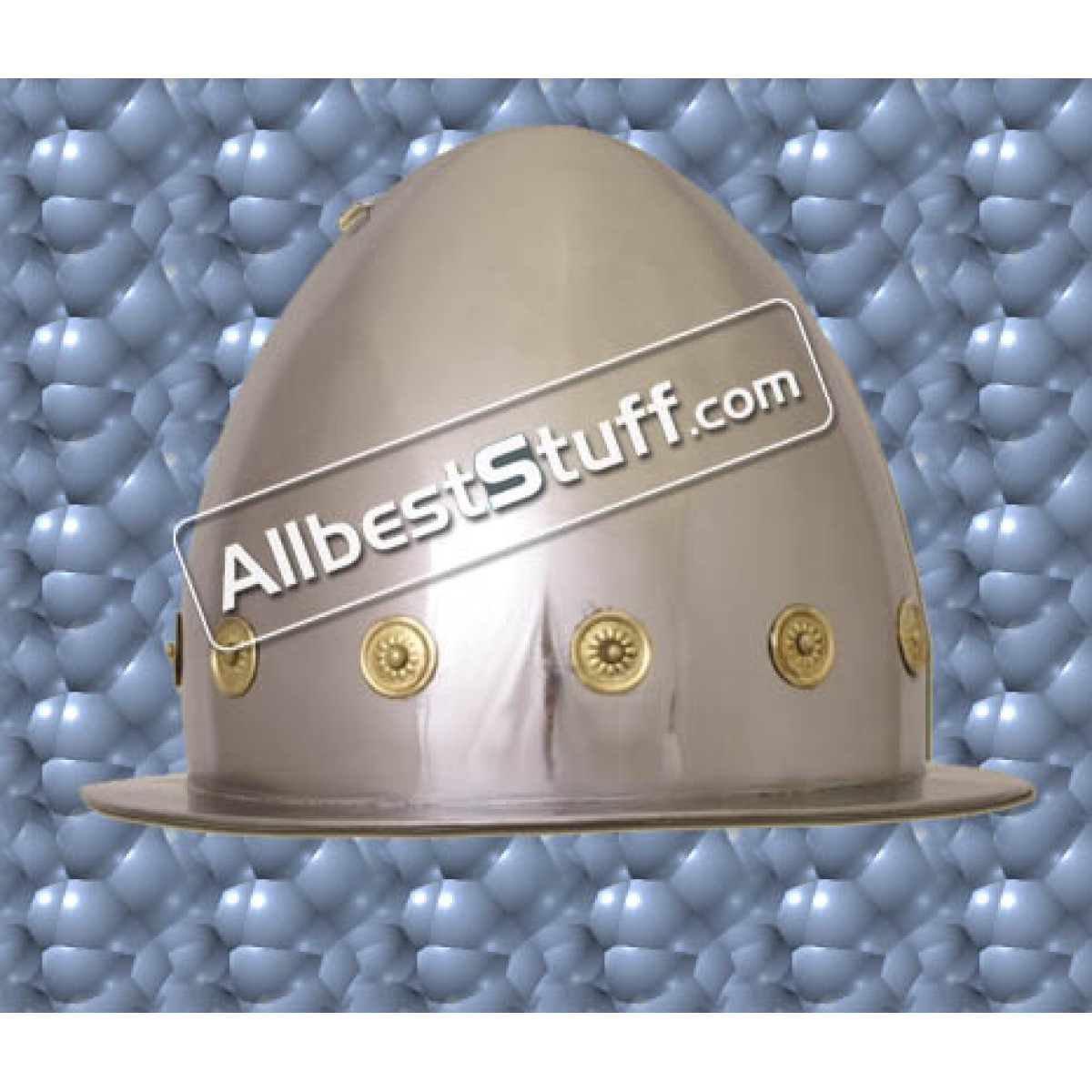This is a replica of the northern italian Cabasset helmet from the 16th century. Similar helmets were also common in Germany. They evolved from the kettle hat and influenced by spanish Morion shapes. The helmet is comparatively high, and surrounded by a narrow rim. It was popular amoung foot soldiers throughout the 17th century. Standard Adult Size fully wearable.