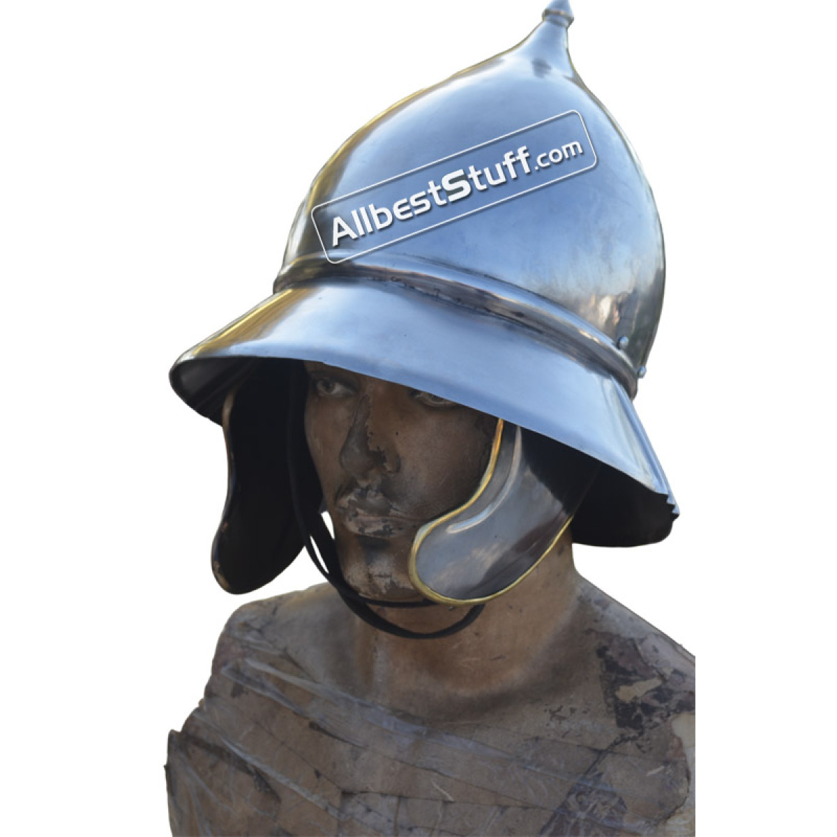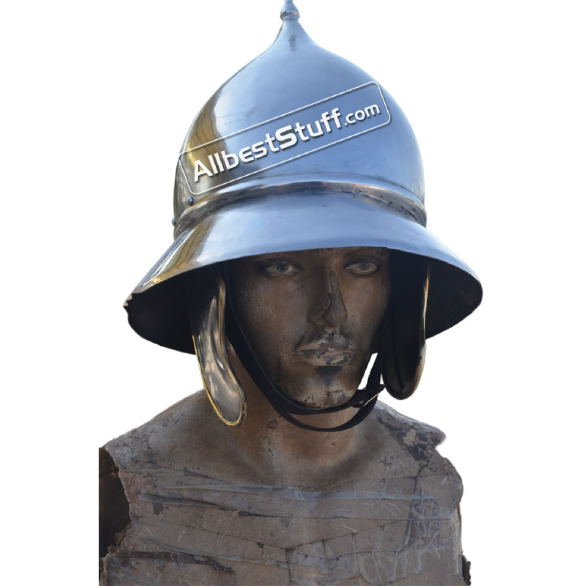 Medieval Celtic Helmet 100 AD Strong 16 Gauge Steel. Celtic Helmet prevalent among Gallic soldiers around 100 AD. Use a heavy inner padding inside for protection. This helmet was found in archaeological digging in the Foret de Rouvray in northern France. Standard Adult Size fully wearable.