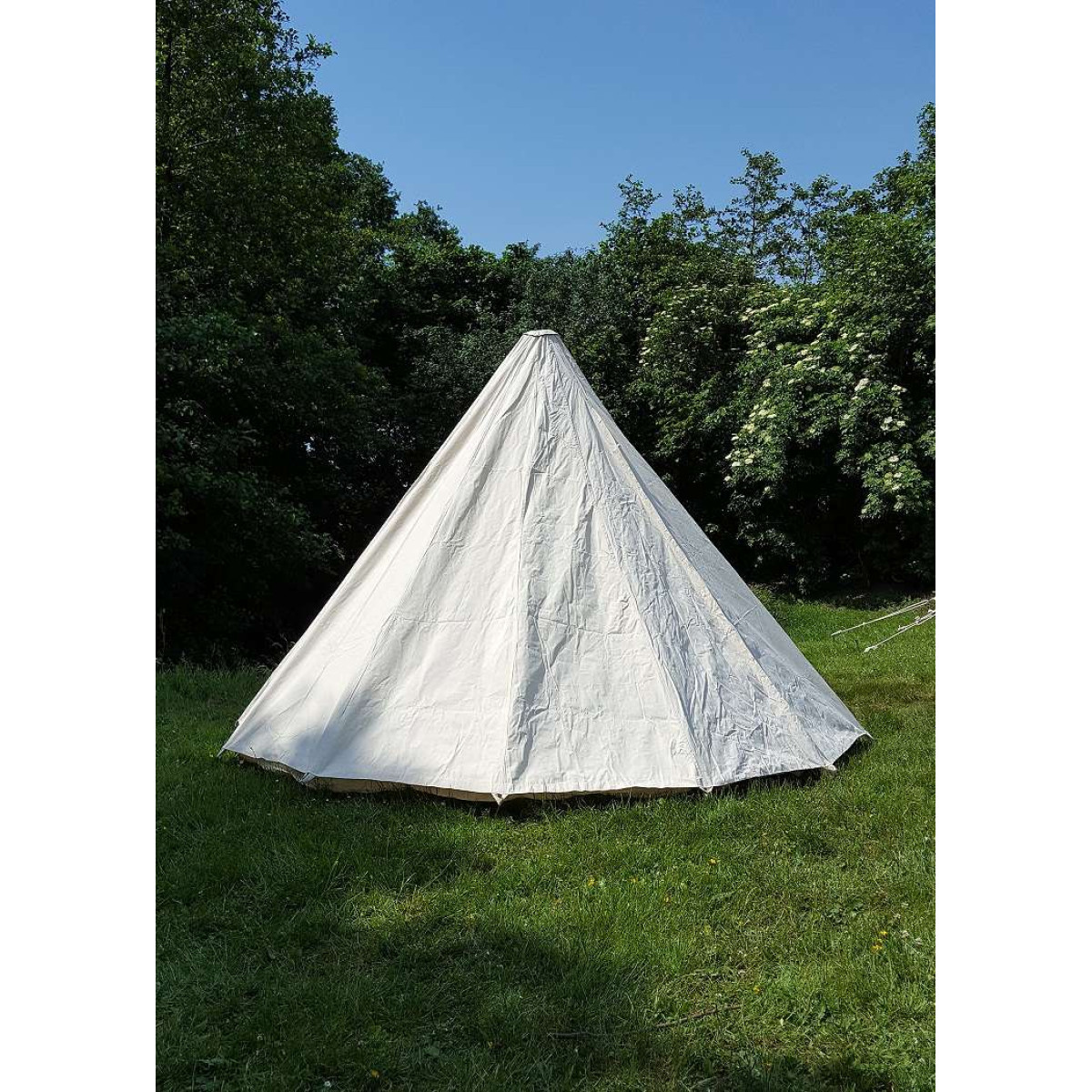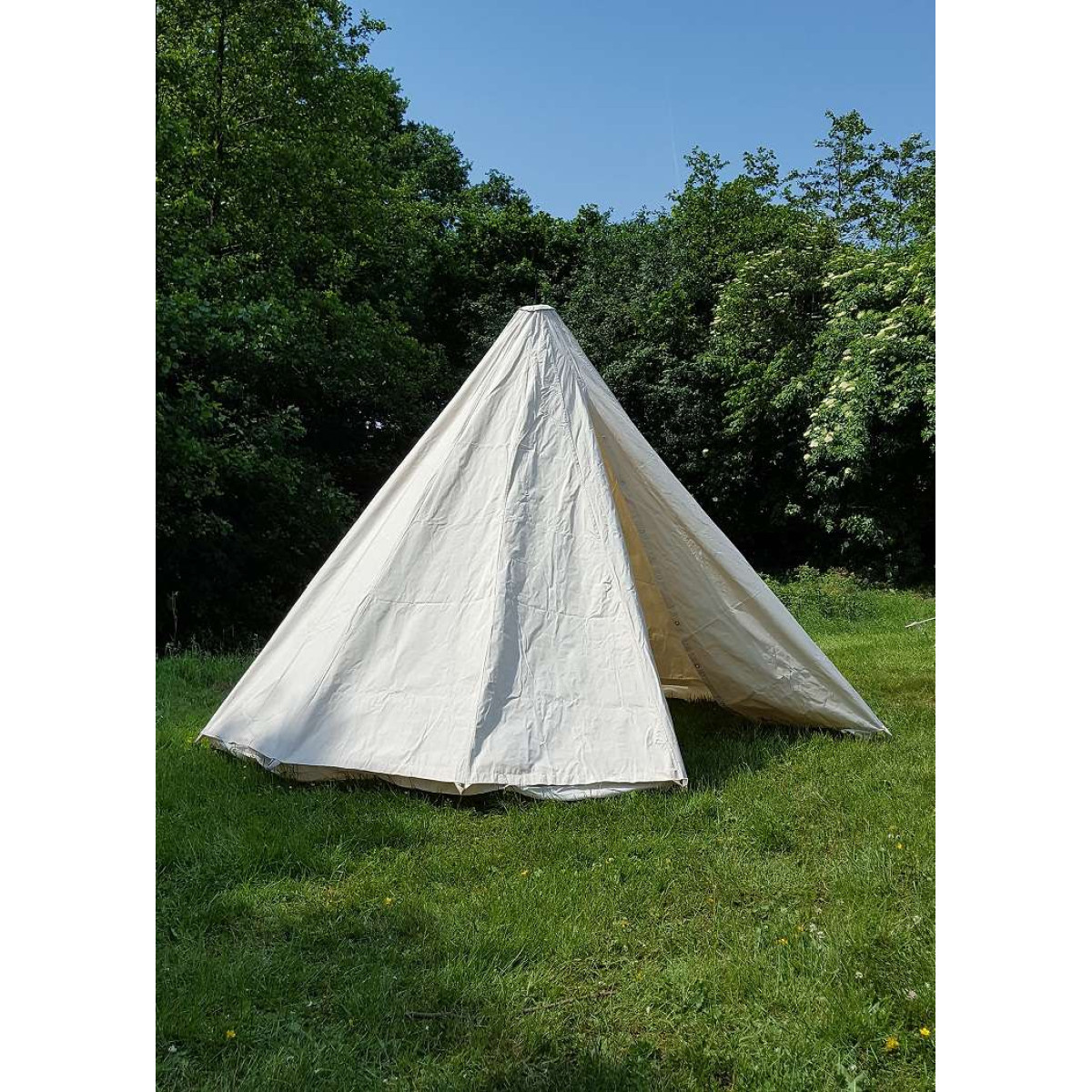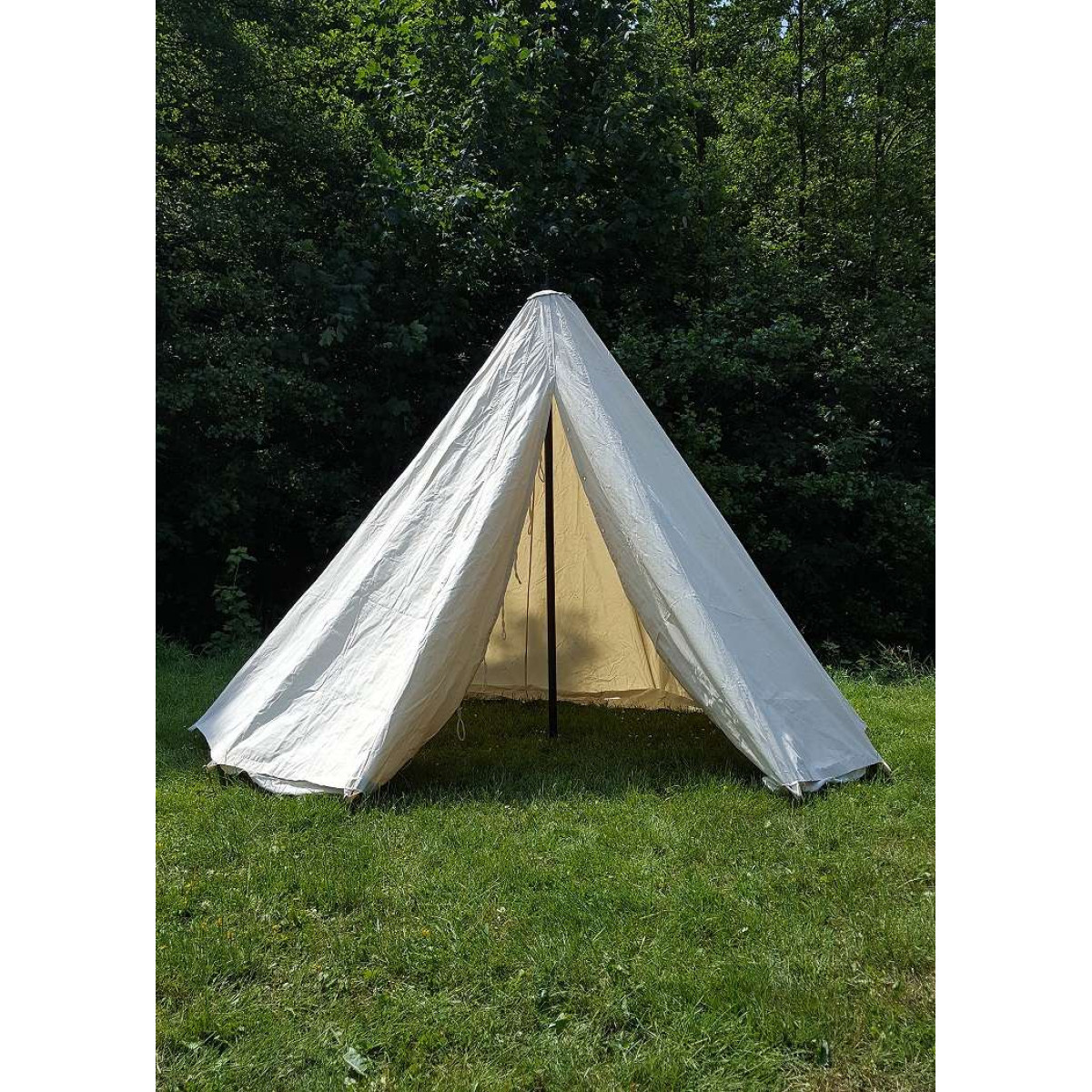 We are offering two conical tents with 3 meter and 4 meter diameter which have floor area of 7 m² and 12.5 m² respectively. These single pole tents offer enough space for 2 people and 3 people with all their luggage. The central height of 2.20 m provides sufficient headroom. These tents are light as well as waterproof and suitable for LARP events or camp. We use fabric made from 100% cotton to make Conical Medieval Tent extremely tear-resistant and waterproof.