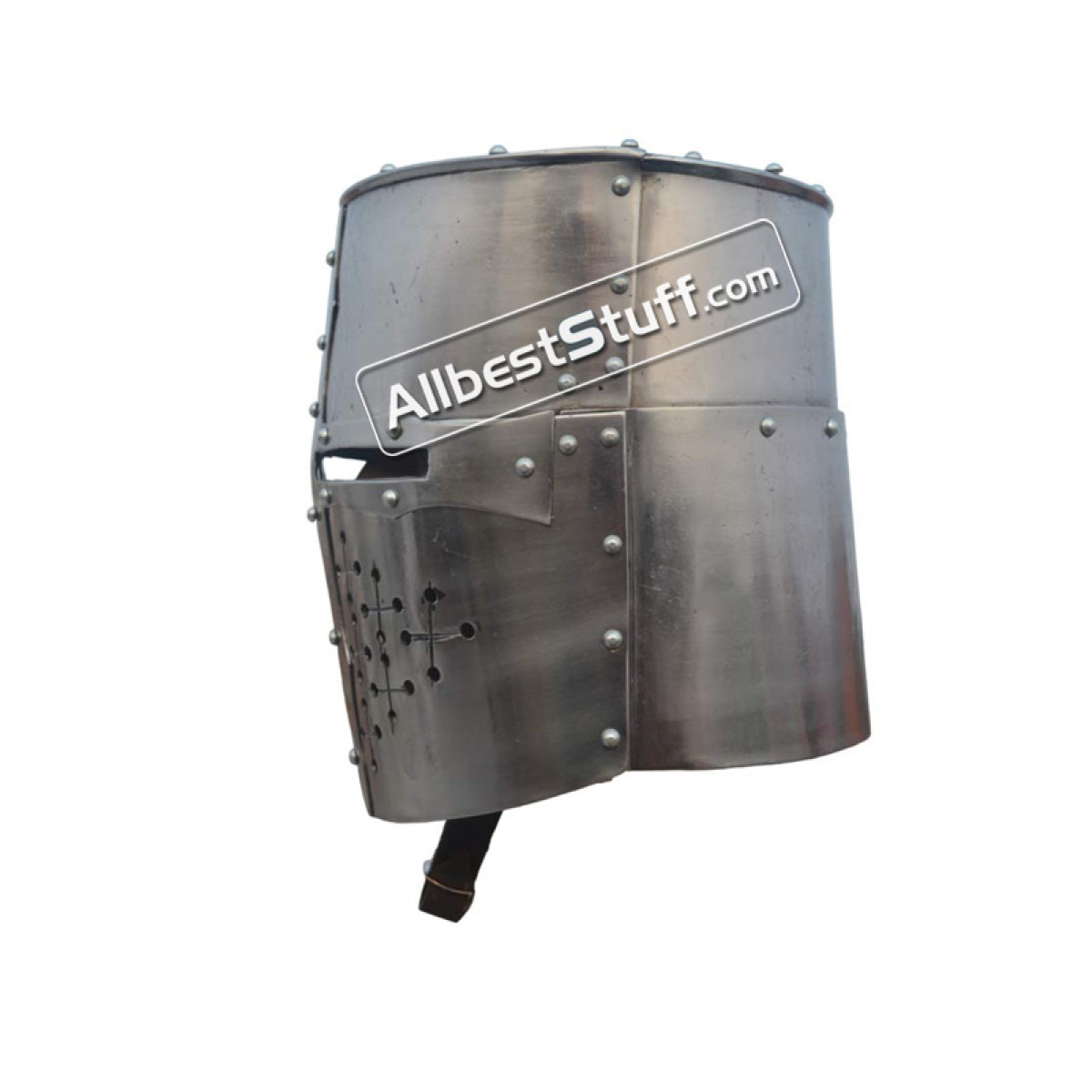 One of the Medieval Crusader Helmet 16 Gauge Strong worn by knights orders, a popular choice of Medieval Crusades between 12th & 15th Century. This replica is made from 16 Gauge steel with buff finish.