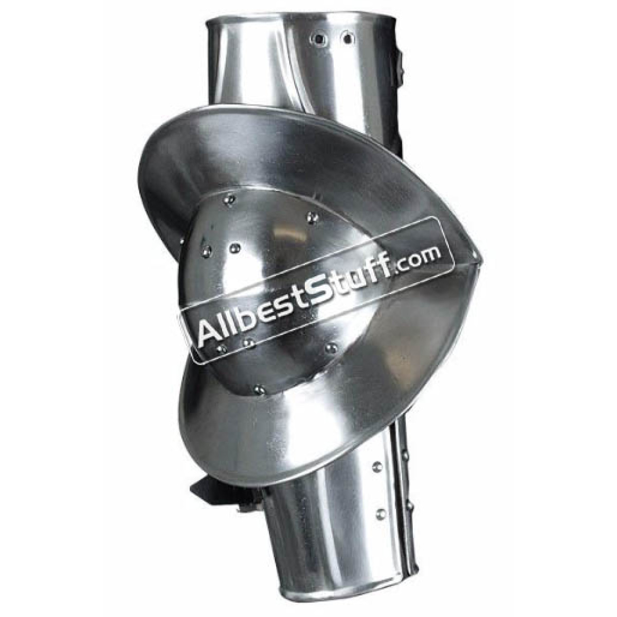 LARP Gothic Arm Protectors are a set of steel elbow cops (or cowters) designed to protect the elbow joints.The elbow cops are rounded with reinforcing ridges and steel rivets. Around the rim of each cop is a large V-shaped flange that deflects blows away from the elbows.