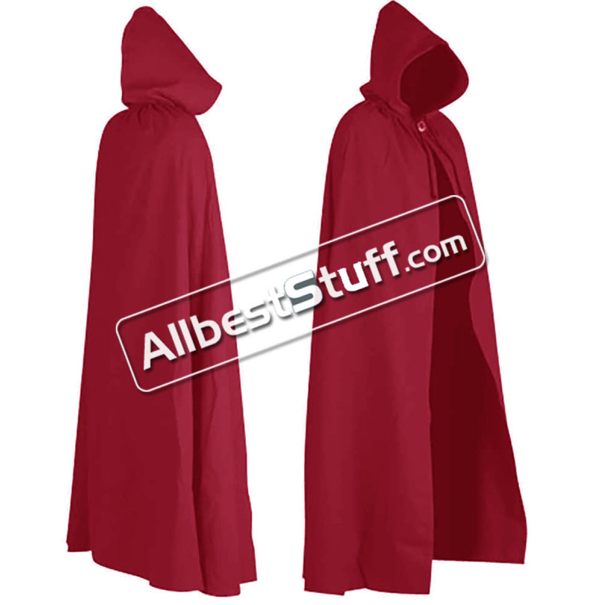 Medieval Historical Outerwear Cotton Cloak with Cape for the Renaissance fair or another historical re-enactment event. the medieval cloak features a large hood that can hide your identity or guard you from the elements. A button fastens the hooded cloak at the neck. made from cotton the long cloak and drawstring hood offer excellent protection from the wind and weather as you journey. this faithful cloak comes in beautiful colors.