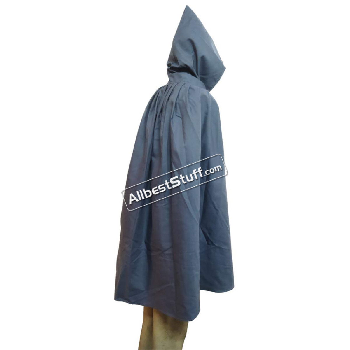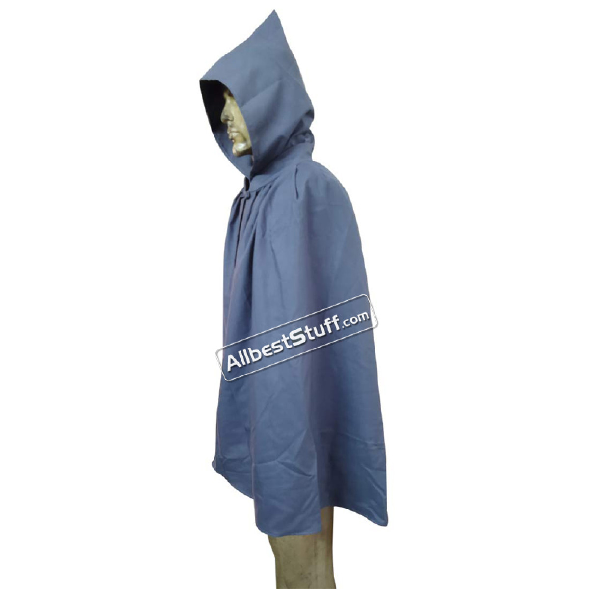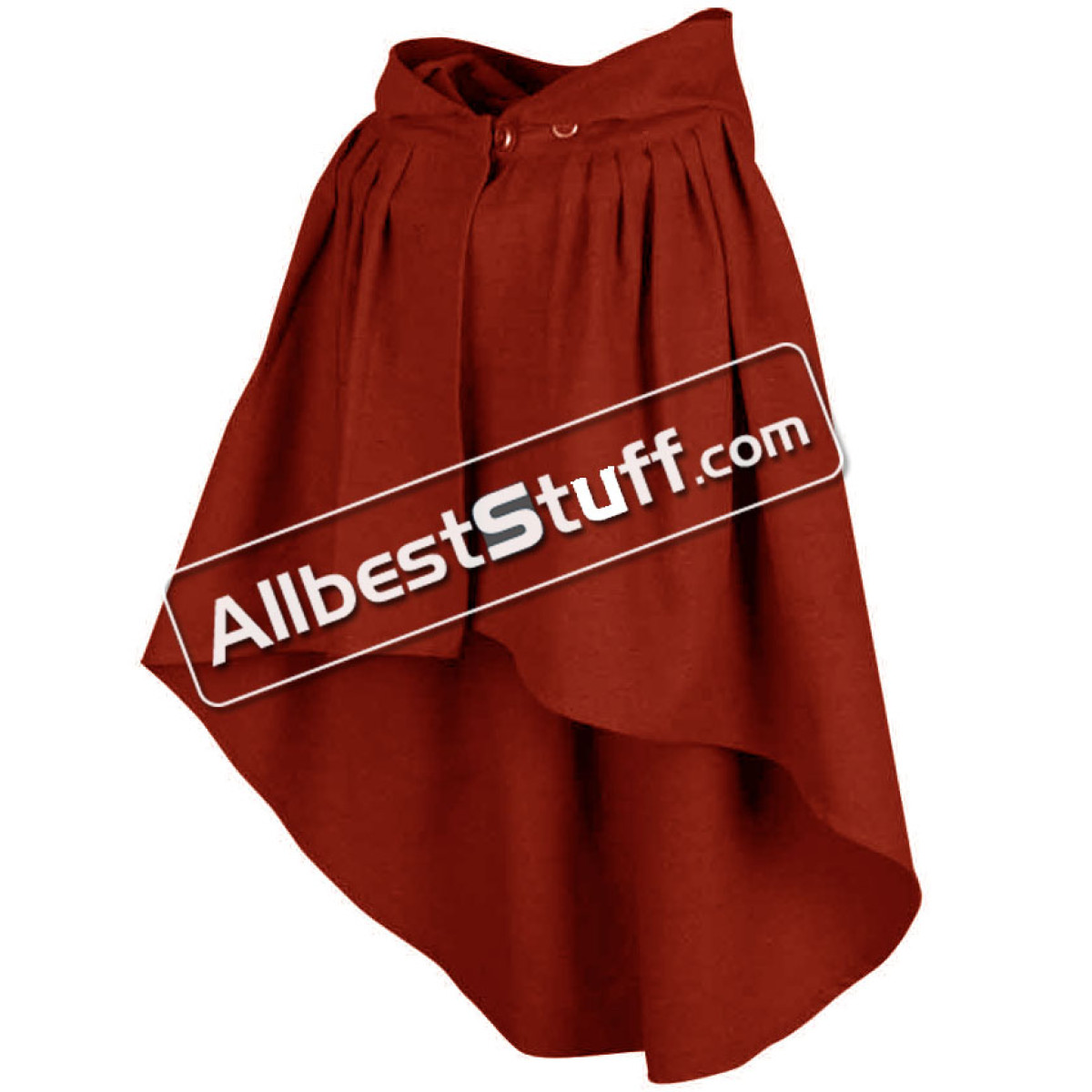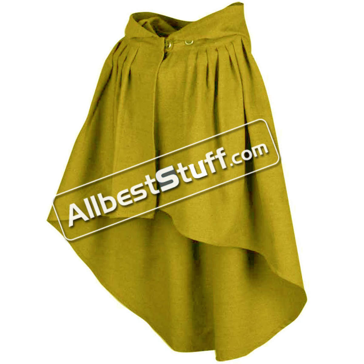 Medieval Historical Reenactment Mantle Cloak is A gorgeous addition to any medieval ensemble, the Historical Reenactment Mantle Cloak serves as an excellent outer layer for a wide range of looks. The medieval shoulder cape features a pleated collar that gives the piece a distinctive style. The hooded cloak falls longer in the back than the front. Overall the medieval cloak falls somewhere between the elbow and thigh in length. A button fastens the short cloak at the neck & second button offers slight adjustment to the fitting. the Cotton cloak is available in Multiple color options.