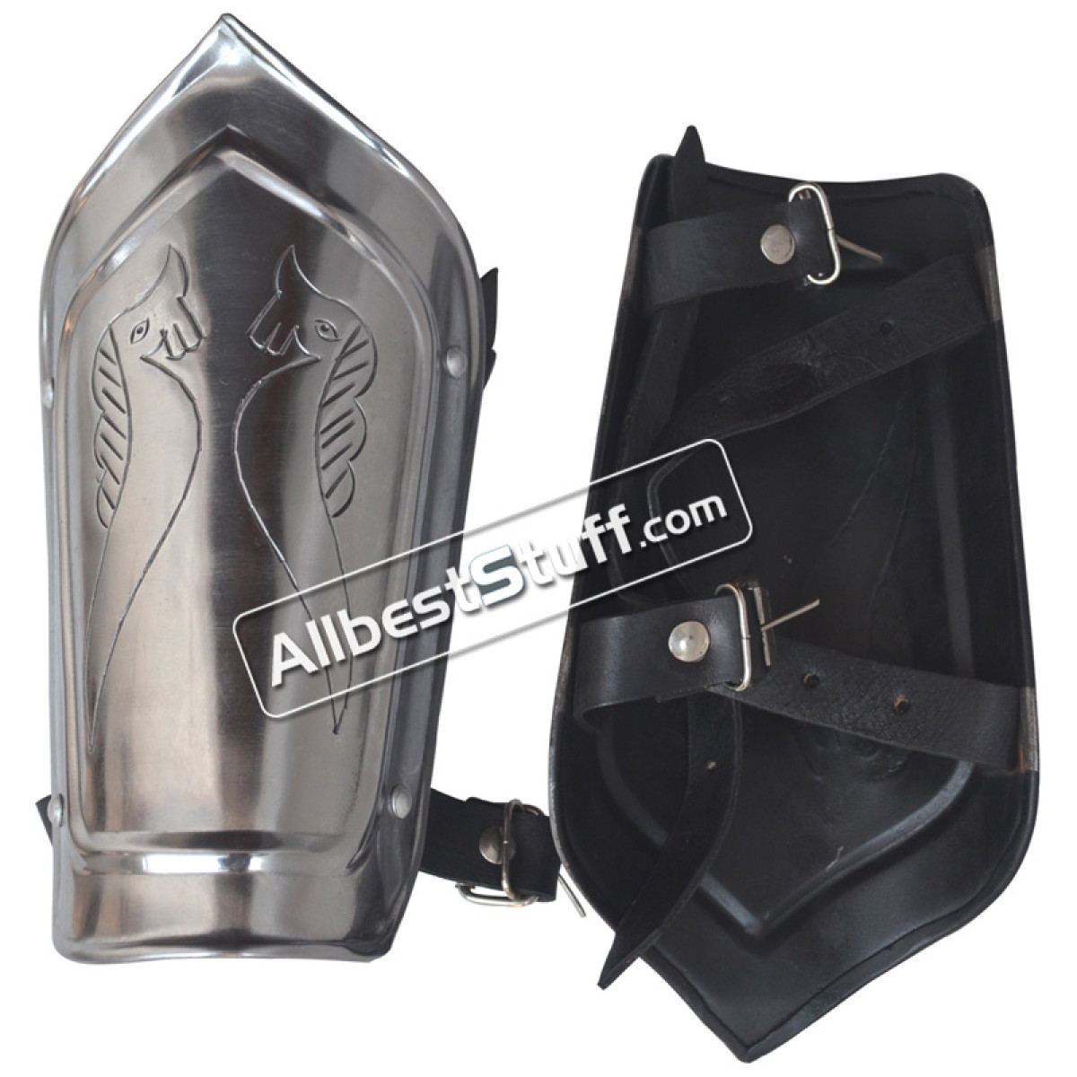 Solidly built arm guards with a strong steel finish and authentic medieval style. Comfortable to wear, offer great protection, and look impressive for reenactment or display. Excellent value, especially on sale.