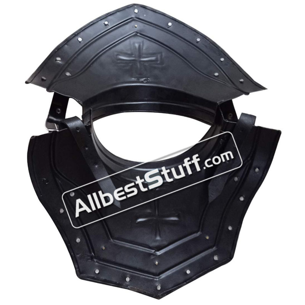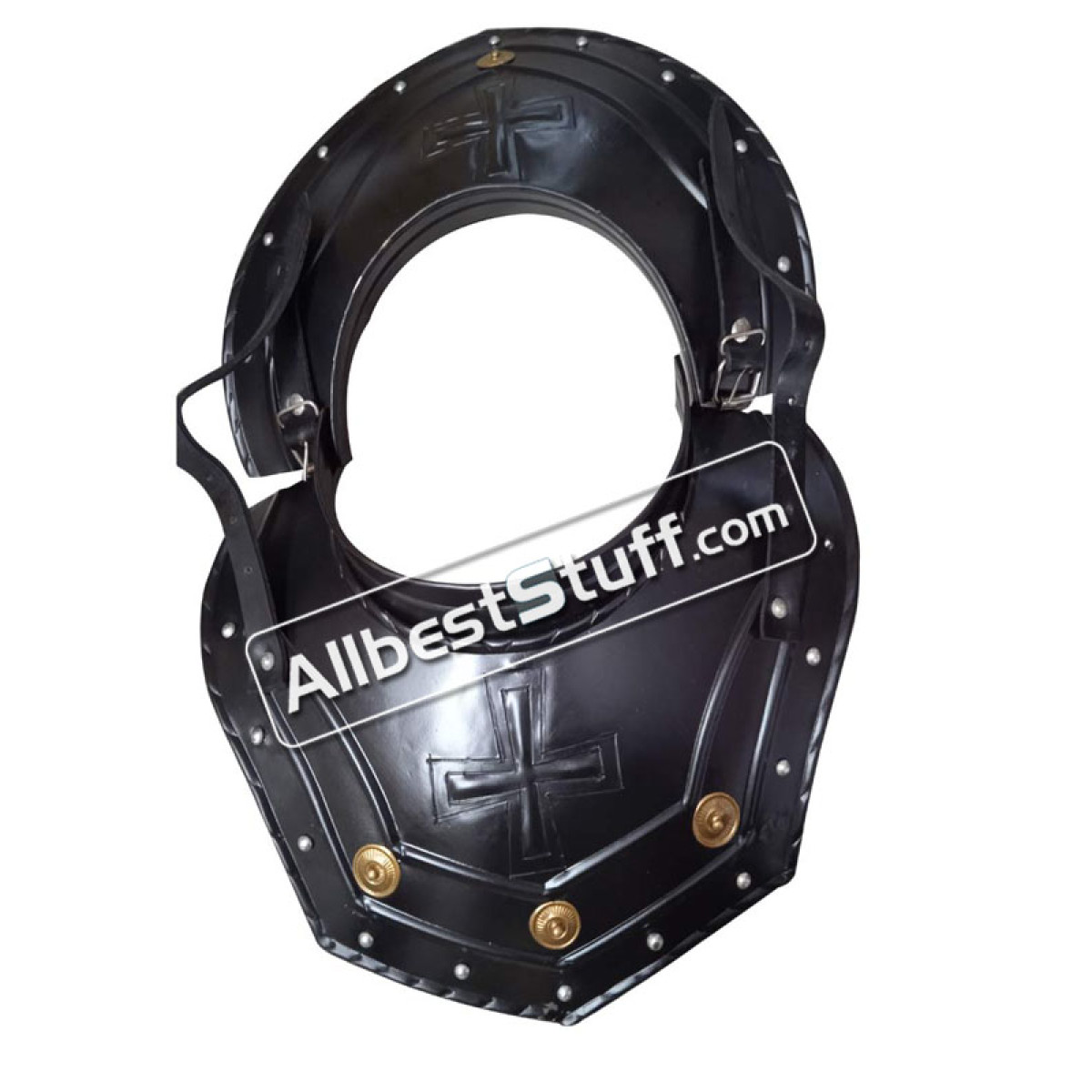 Materiel : 18 gauge Iron steel with Leather strapsFinish - BlackSize - This Gorget set is full size and wearableCondition: Brand New