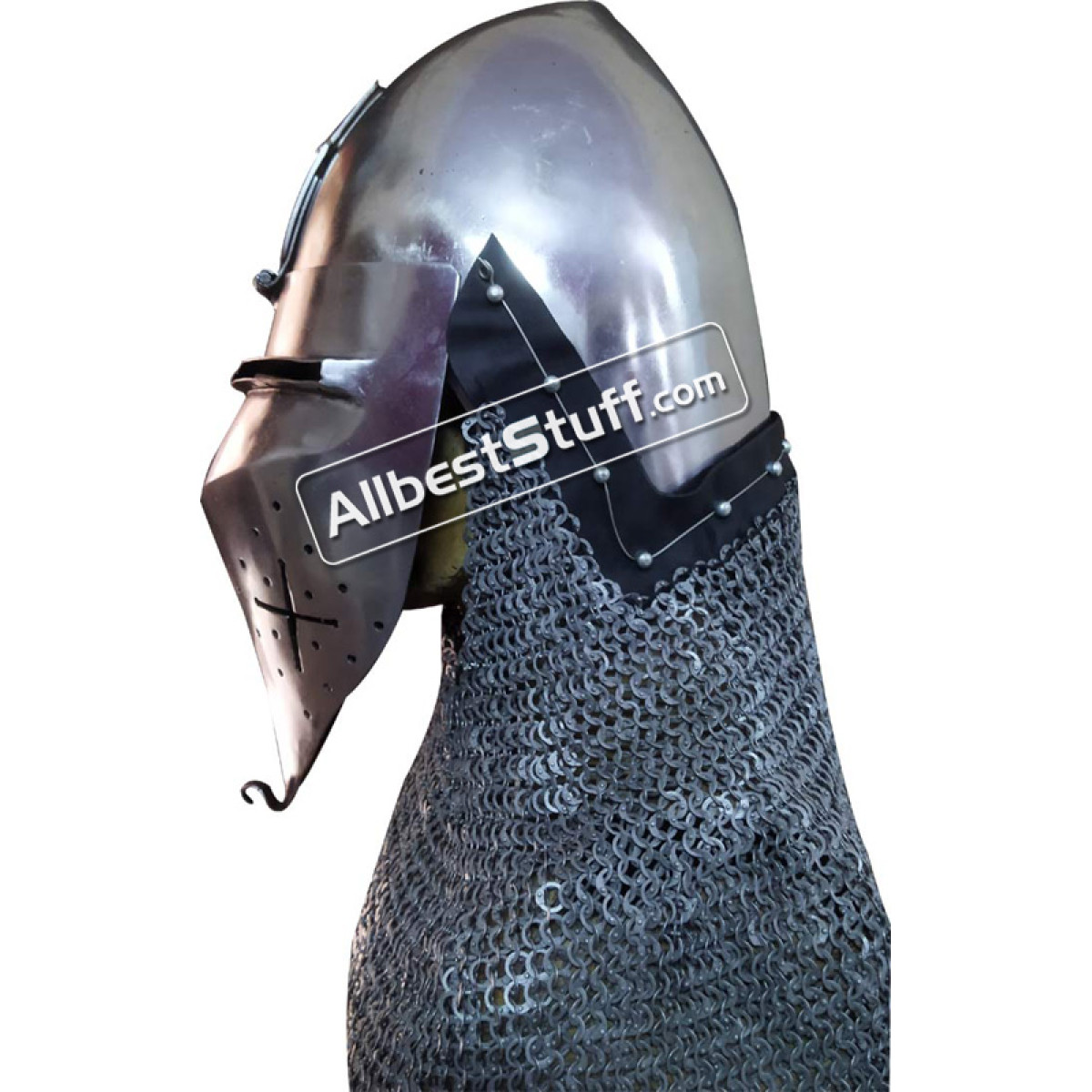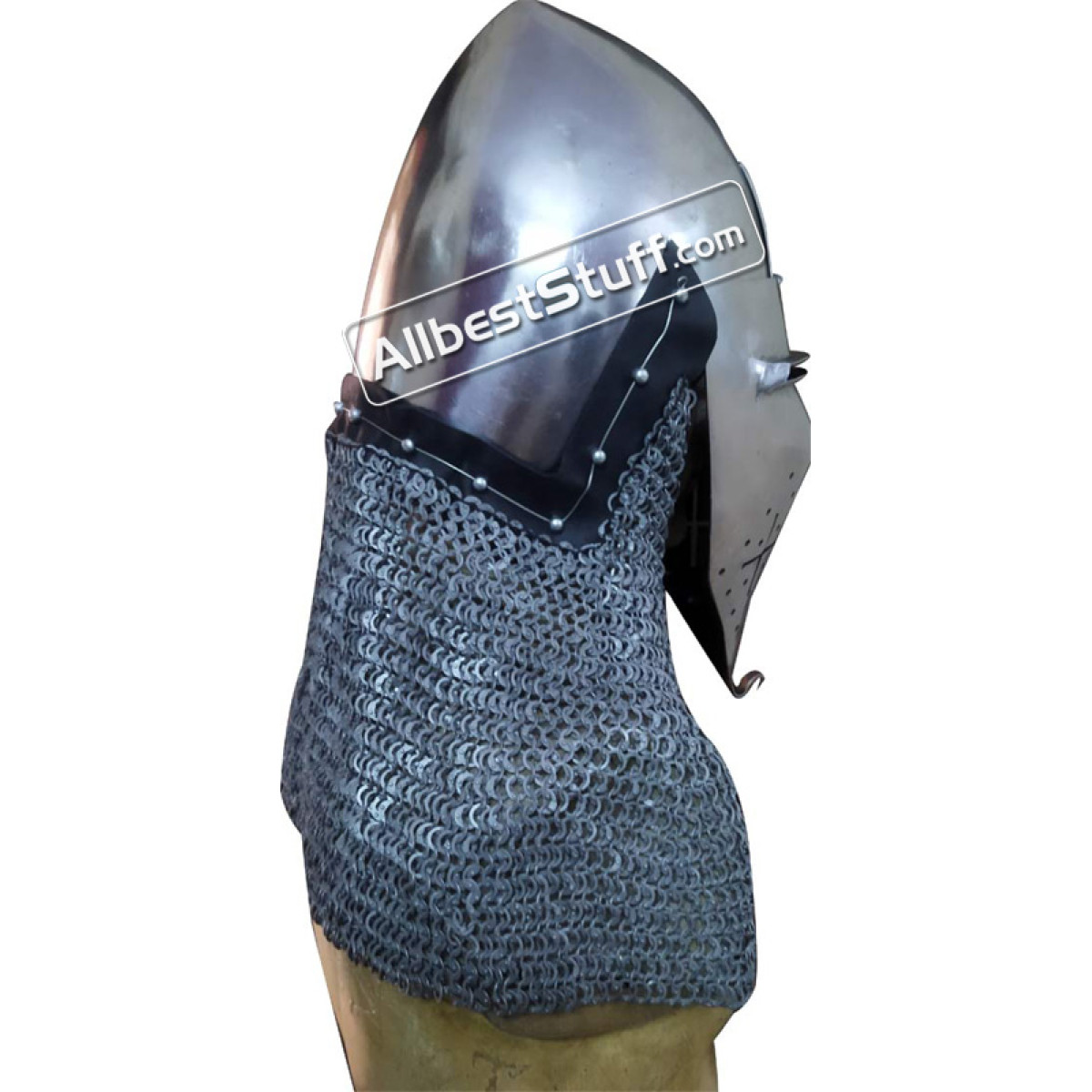 Specifications:Approx. Circumference: 26 inchesInclusions: Leather liner with chin strapMaterial : 14 Gauge SteelChainmail Aventail : Choose Optional